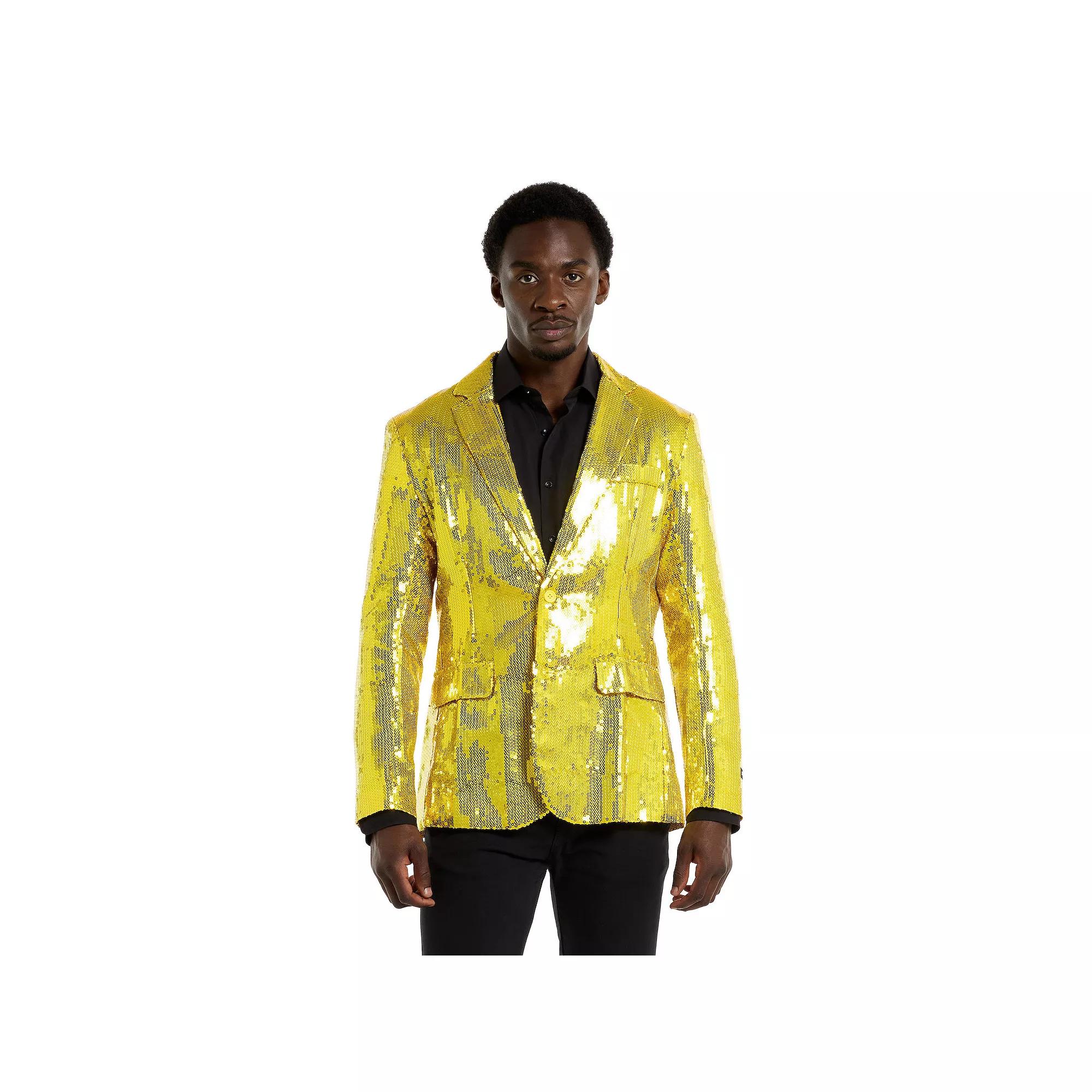 Turn heads in this Mens Suitmeister Christmas New Years Eve Party Blazer. Turn heads in this Mens Suitmeister Christmas New Years Eve Party Blazer. FEATURES Button front Long sleeve Cuffed One left inside pocket Button fly Jacket: 3 front faux pocketsFIT & SIZING NA Slim fitFABRIC & CARE Polyester Lining: polyester Machine wash Imported Color: Sequins Yellow. Gender: male. Age Group: adult.