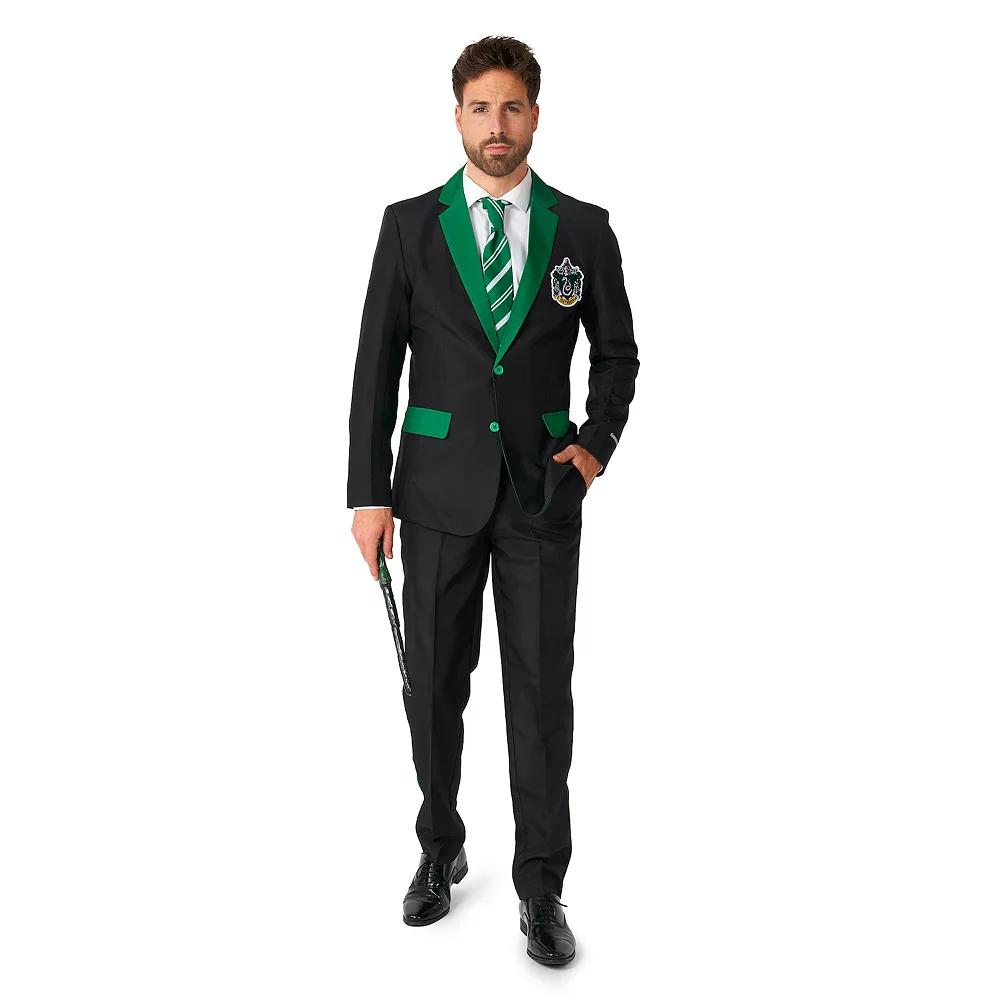 Show your ambition, resourcefulness, determination, and cleverness with this men's Suitmeister Harry Potter Slytherin slim fit costume suit. Click on this MEN'S GUIDE to find the perfect fit and more! Show your ambition, resourcefulness, determination, and cleverness with this men's Suitmeister Harry Potter Slytherin slim fit costume suit. Click on this MEN'S GUIDE to find the perfect fit and more! FEATURES Includes: matching blazer jacket, pants & tie Jacket: long sleeves, button front, 3 front faux pockets Pants: 2 side functional pockets, 2 back functional pockets, button flyFIT & SIZING 33.5-in. inseam Slim fitFABRIC & CARE Polyester Machine wash Imported Color: Slytherinâ„¢. Gender: male. Age Group: adult.