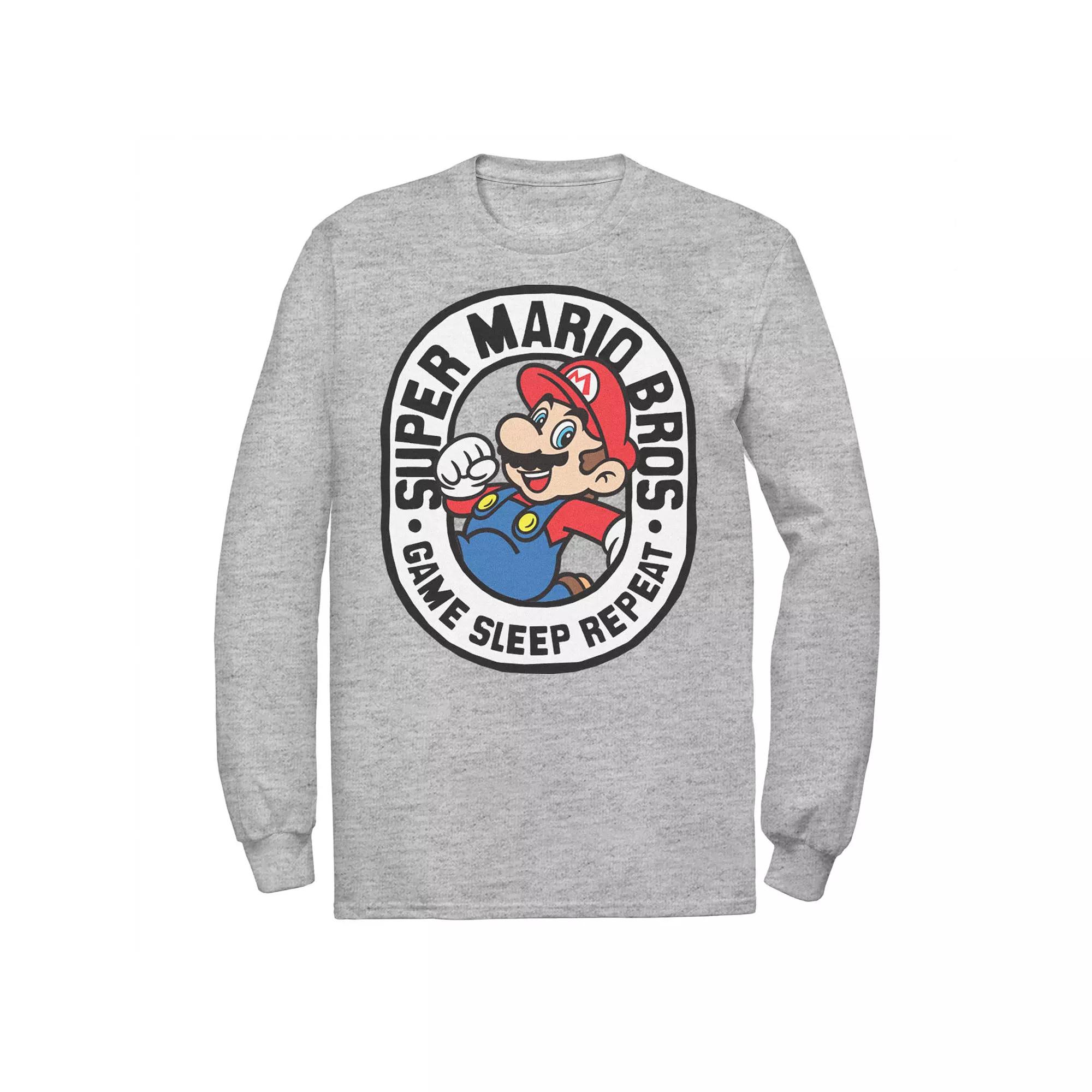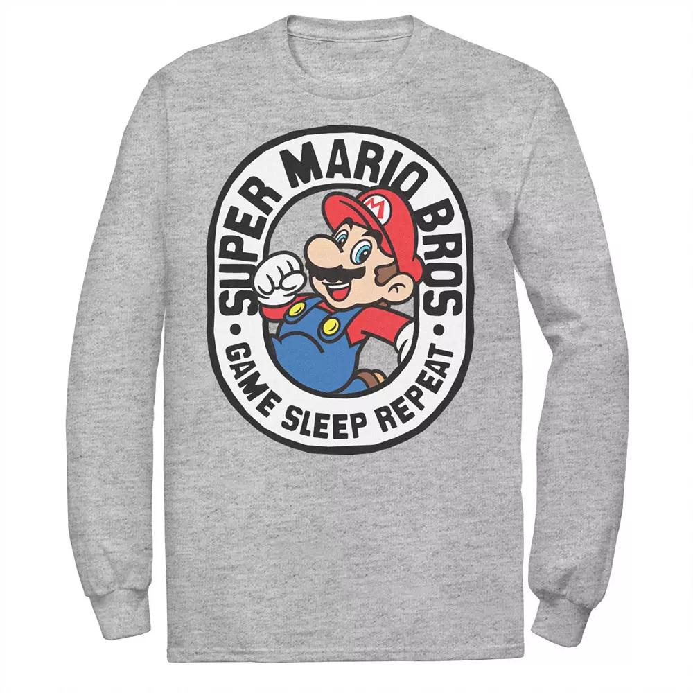 Revamp his wardrobe with this Mens Super Mario Bros Game Sleep Repeat Retro Logo Long Sleeve Tee. Revamp his wardrobe with this Mens Super Mario Bros Game Sleep Repeat Retro Logo Long Sleeve Tee. FEATURES Crewneck Long sleeveFIT & SIZING Classic fitFABRIC & CARE Cotton, polyester Machine wash Imported Size: 4XL. Color: Med Grey. Gender: male. Age Group: adult. Material: Cotton Blend.