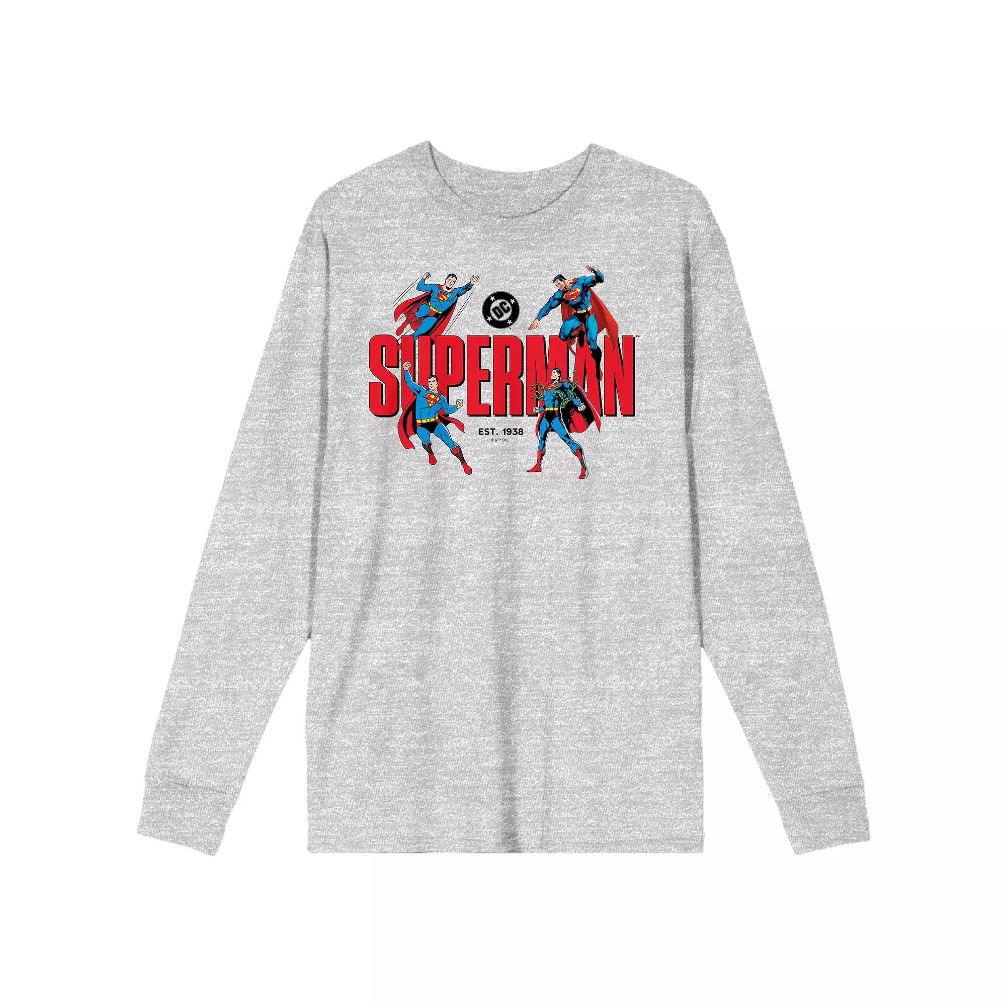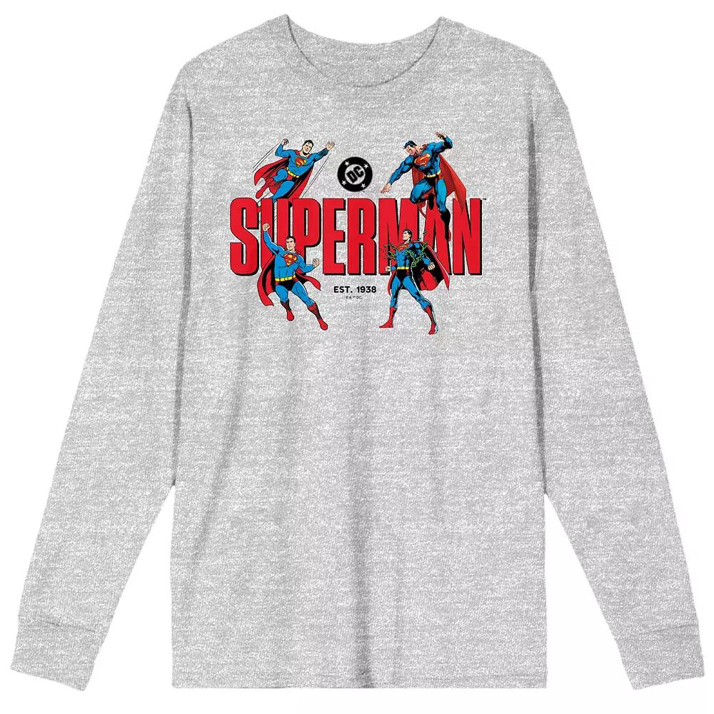 Look good wearing this Men's Superman Kal-El Poses 90th Anniversary Long Sleeve Tee. Click on this MEN'S GUIDE to find the perfect fit and more!Look good wearing this Men's Superman Kal-El Poses 90th Anniversary Long Sleeve Tee. Click on this MEN'S GUIDE to find the perfect fit and more!FEATURES Crewneck Long sleeveFABRIC & CARE Cotton Machine wash Imported Color: Gray. Gender: male. Age Group: adult.