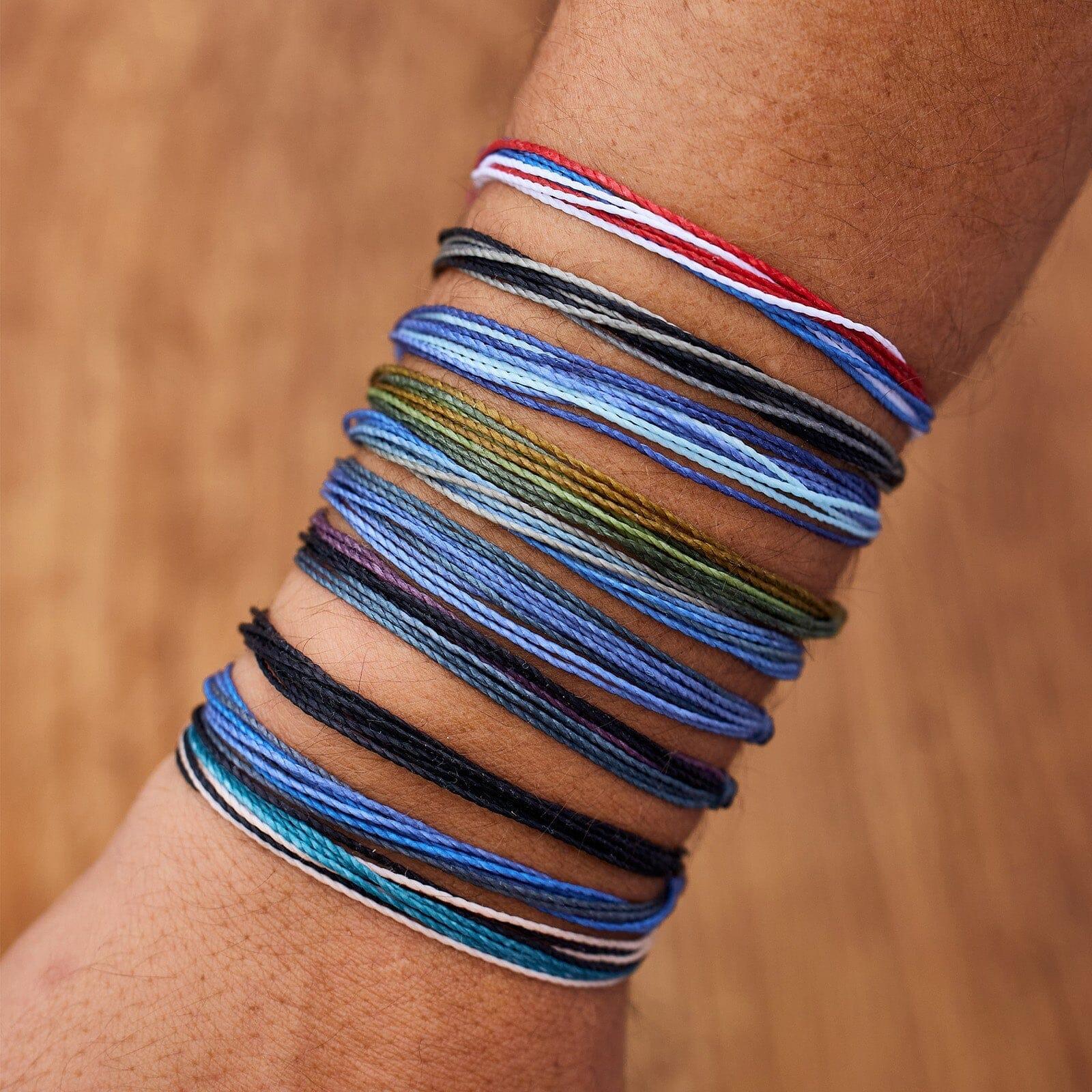 Save 31% on bracelets by purchasing our Men's Surf & Skate Friendship Pack ($70 value), featuring 10 of our top selling originals! Wear them all together, mix and match your favorite combinations or share with your friends. Each one is handmade, waterproof and totally unique—in fact, the more you wear it, the cooler it looks. WaterproofGo surf, snowboard, or even take a shower with them on.