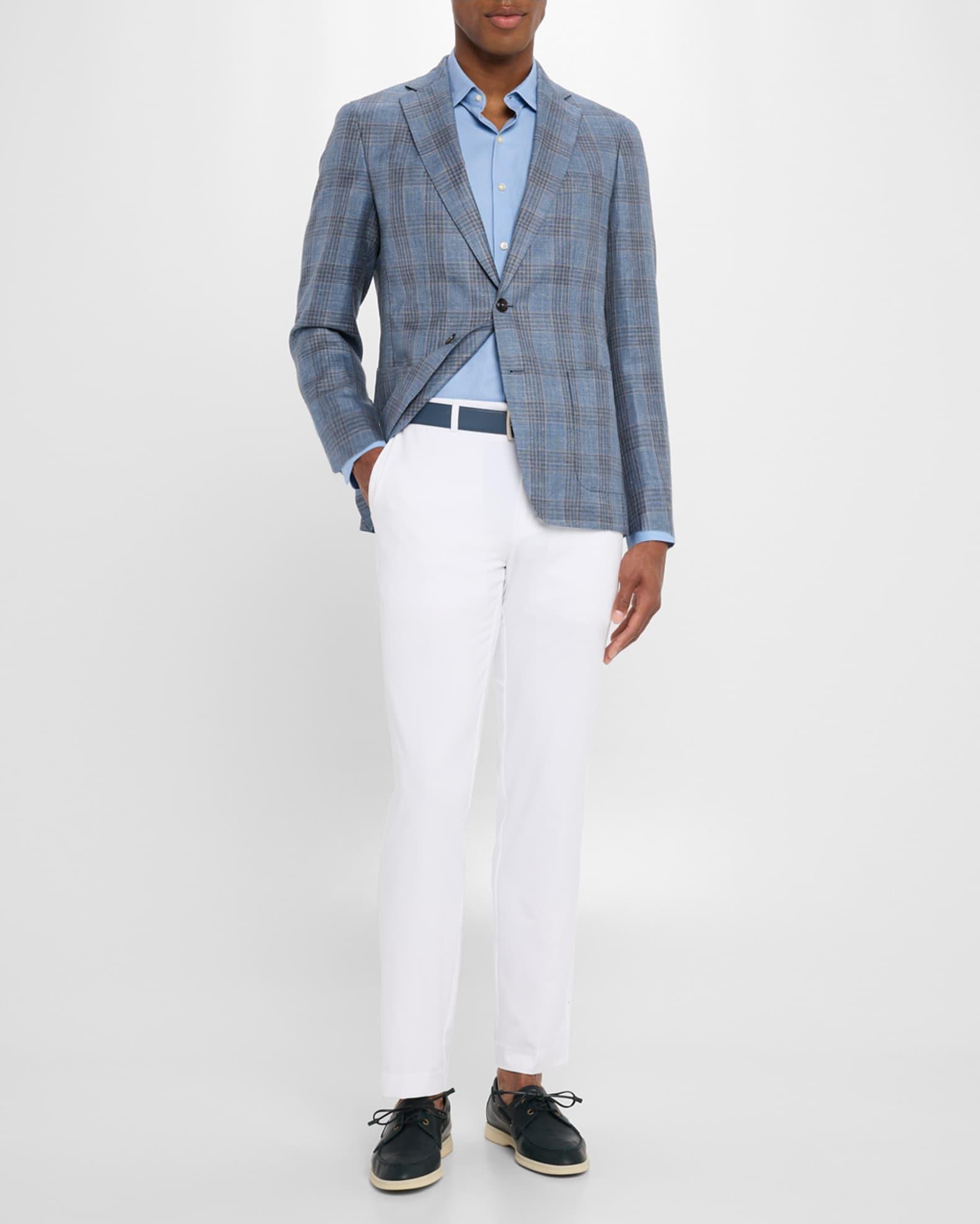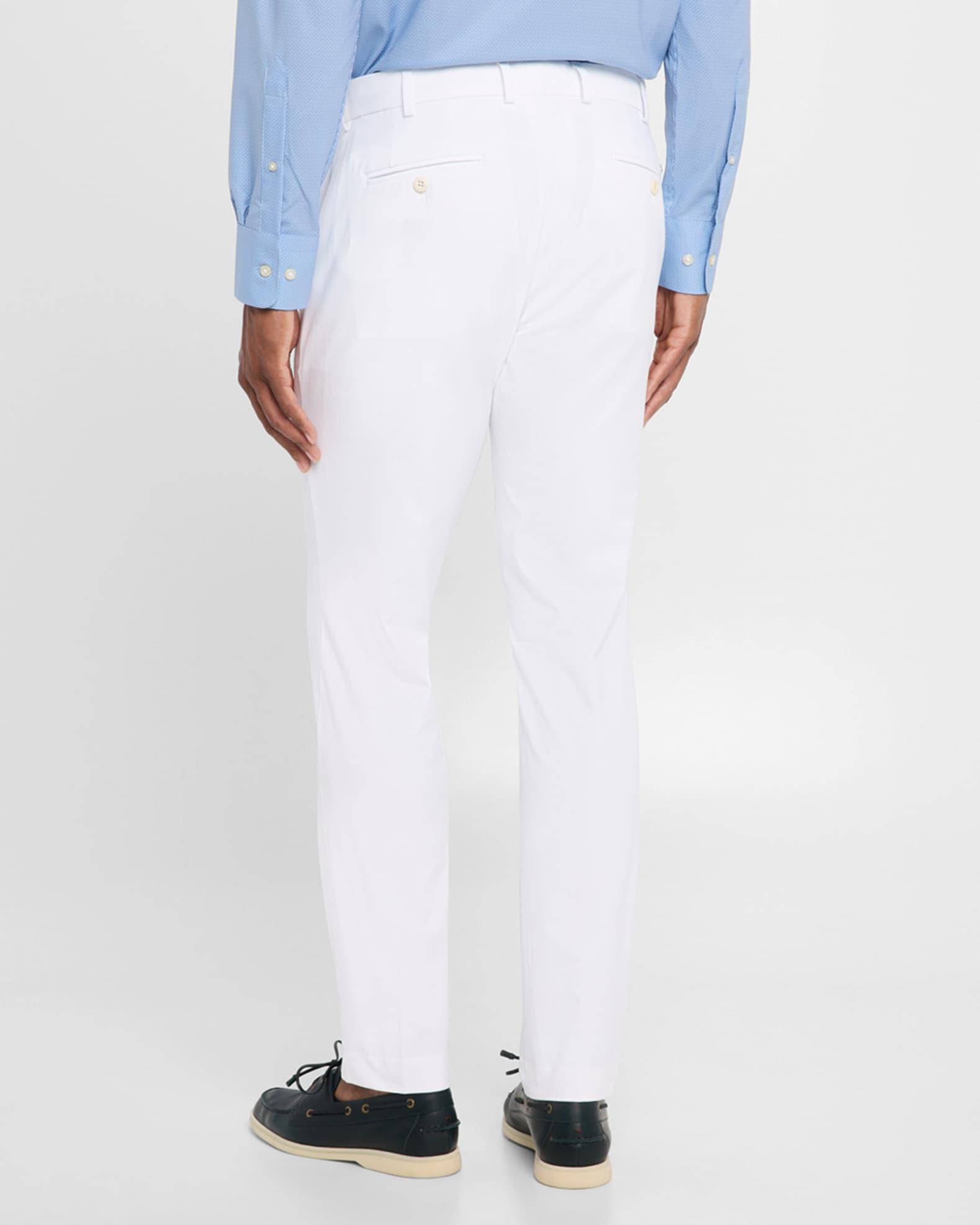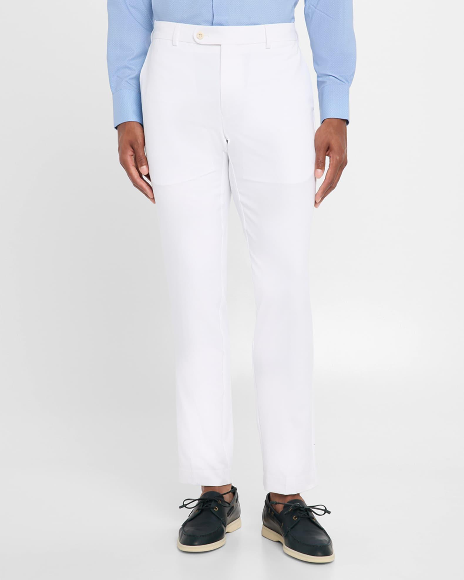 Peter Millar performance trousers deliver the technical benefits of athletic apparel in a sleek, everyday silhouette made for days on the move Water-resistant and wrinkle-resistant Four-way stretch Moisture wicking Regular rise Flat front Side slip pockets Buttoned back besom pockets Slim fit through straight legs Full length Extended button-zip fly; belt loops Polyester/spandex Unlined Do not iron, machine wash cold, tumble dry Imported