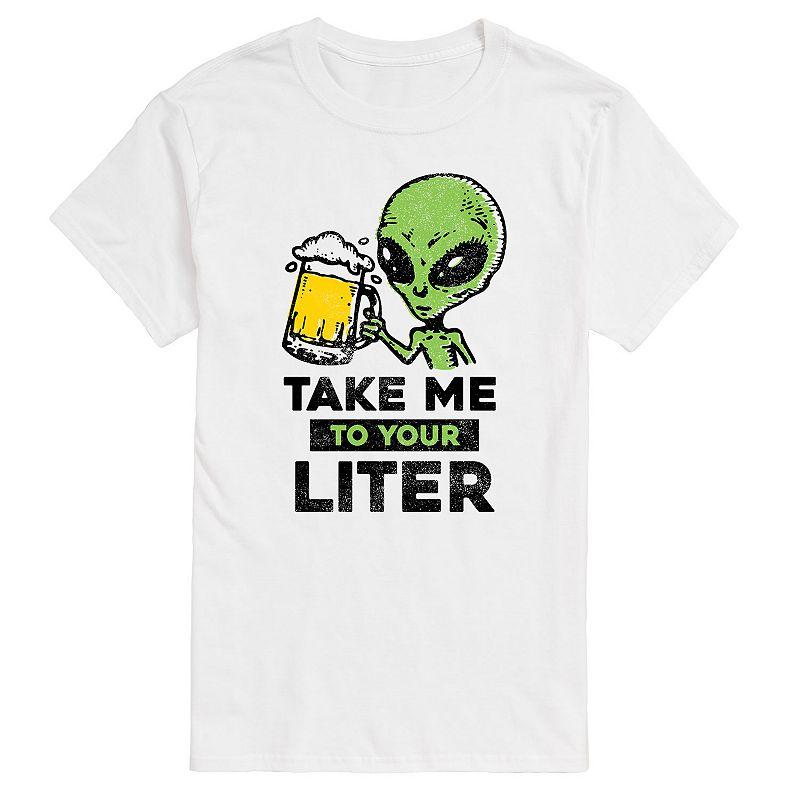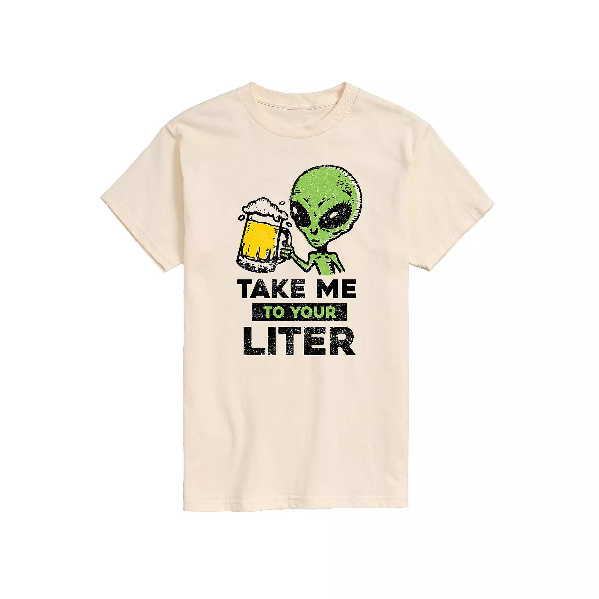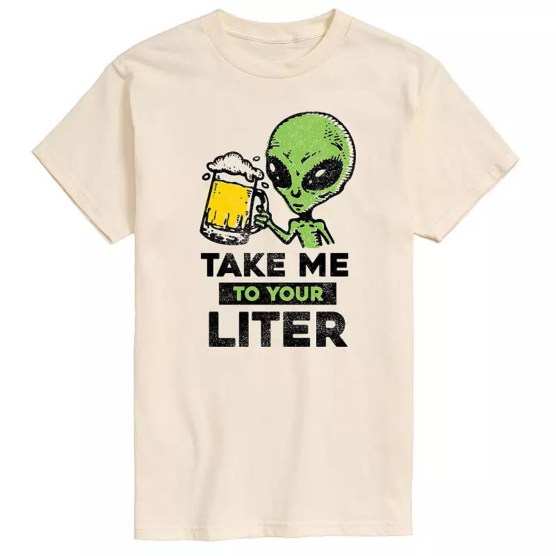 He needs a pint right away in this Mens Take Me To Your Liter Alien Beer Graphic Tee. He needs a pint right away in this Mens Take Me To Your Liter Alien Beer Graphic Tee. FEATURES Crewneck Short sleevesFABRIC & CARE Solid colors: cotton, Heather: cotton, polyester Machine wash Imported Size: XXL. Color: Beige. Gender: male. Age Group: adult.