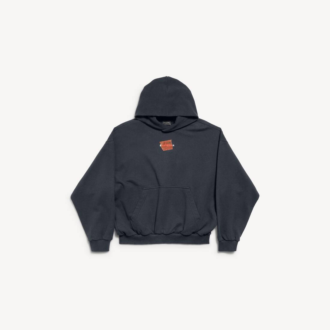 Men's Taped Balenciaga Back Hoodie Medium Fit in Faded Black