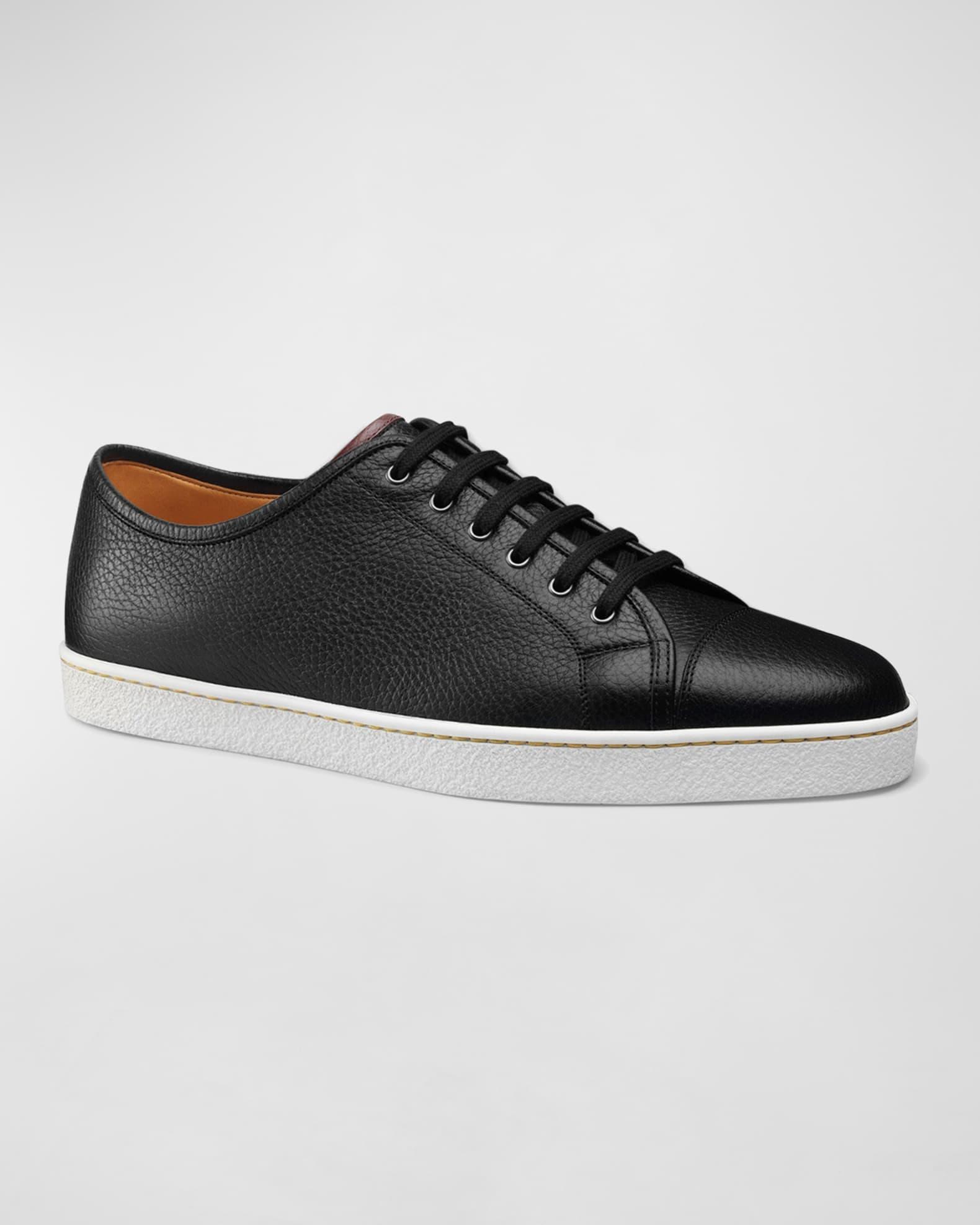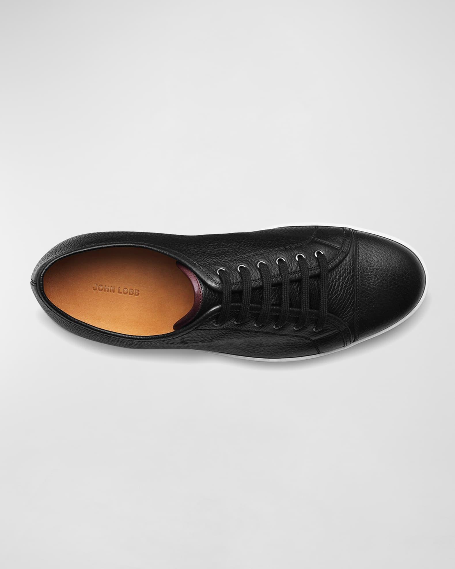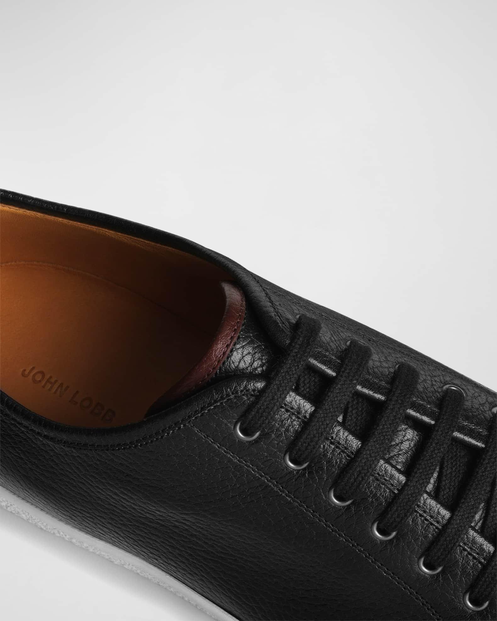 John Lobb sneakers in textured calf leather, rubber, and cotton Flat heel Round cap toe Lace-up vamp Leather lining Non welted Rubber outsole Made in Italy