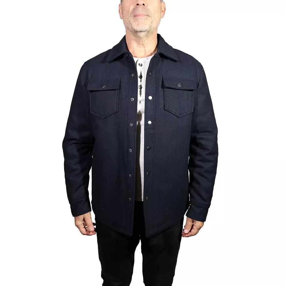 Step into style with this Men's The Bowery Faux Wool Shacket. Click on this MEN'S GUIDE to find the perfect fit and more!Step into style with this Men's The Bowery Faux Wool Shacket. Click on this MEN'S GUIDE to find the perfect fit and more!FEATURES Snap closure Midweight Rounded hemline Long sleeves Two button close pockets at chest, two side seam pockets at hipFIT & SIZING 30.5 in. lengthFABRIC & CARE Polyester, acrylic, wool, rayon Polyester lining Dry clean Imported Size: XXL. Color: Navy. Gender: male. Age Group: adult.