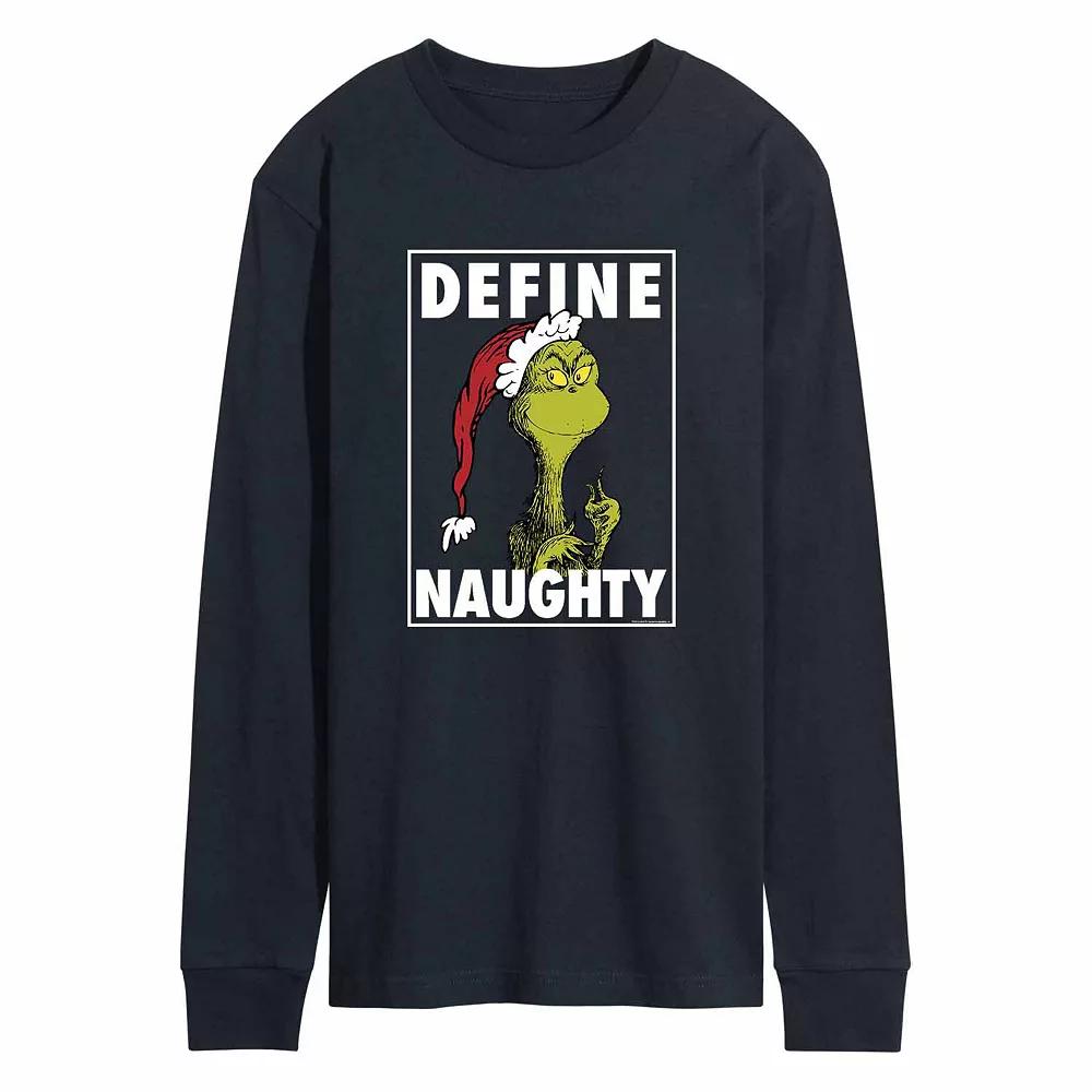 This mens The Grinch Christmas tee is sure to steal your heart. This mens The Grinch Christmas tee is sure to steal your heart. Crewneck Long sleevesFABRIC & CARE Cotton Machine wash Imported Color: Navy. Gender: male. Age Group: adult. Pattern: Graphic.