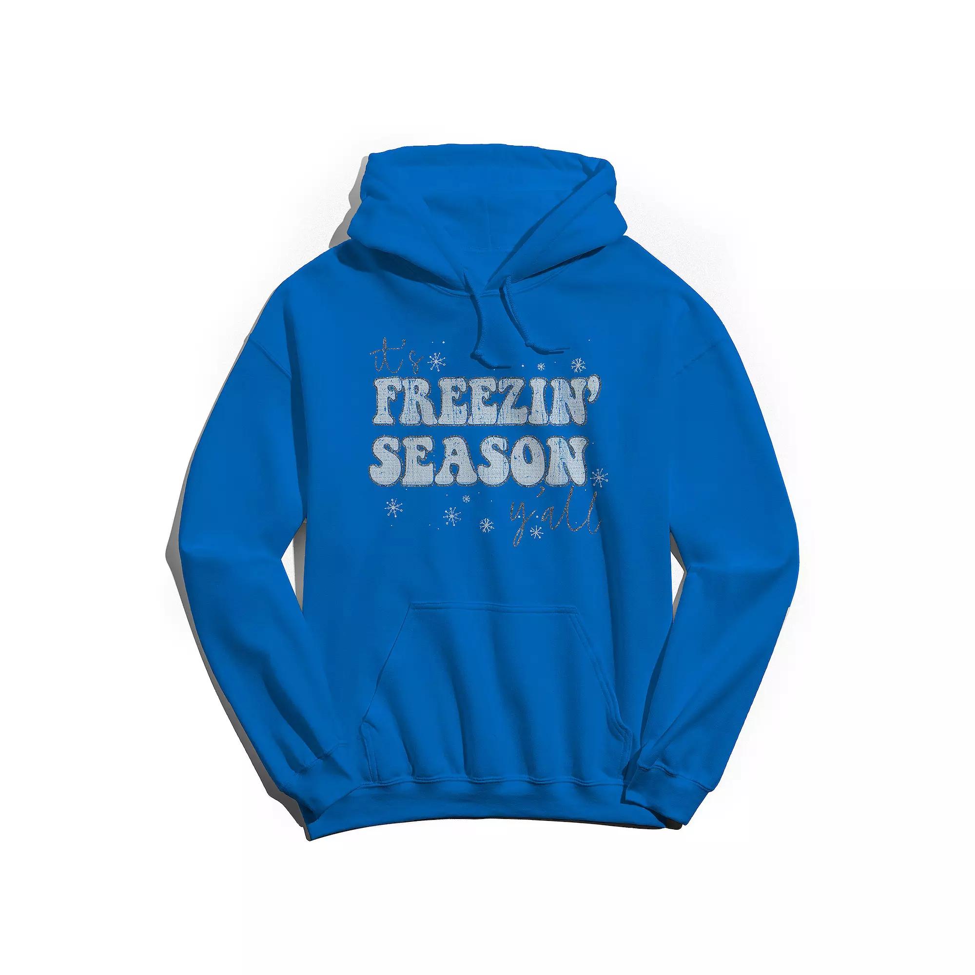 Get into the holiday spirit with this Mens Its Freezin Season Hoodie. Get into the holiday spirit with this Mens Its Freezin Season Hoodie. FEATURES Drawstring hood Ribbed hemline Long sleeveFABRIC & CARE Cotton Machine wash Imported Color: Brt Blue. Gender: male. Age Group: adult. Material: Fleece|Cotton.