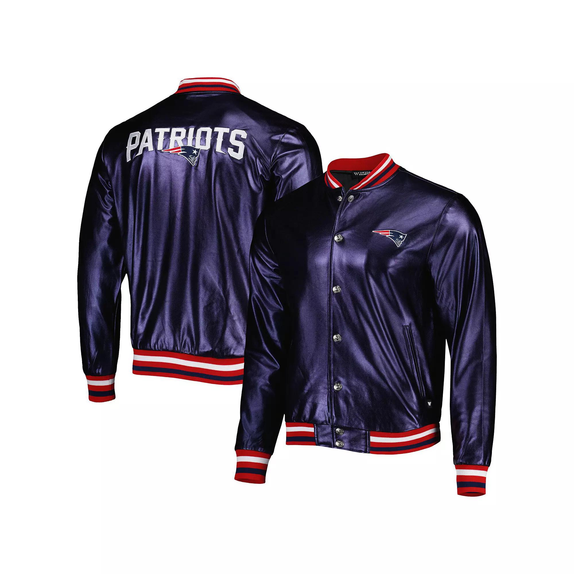 Take on any weather with this New England Patriots jacket from The Wild Collective. It features embroidered graphics over a metallic design, striped cuffs and a full-snap front for a classic bomber look. Stand out in New England Patriots style with this eye-catching jacket.