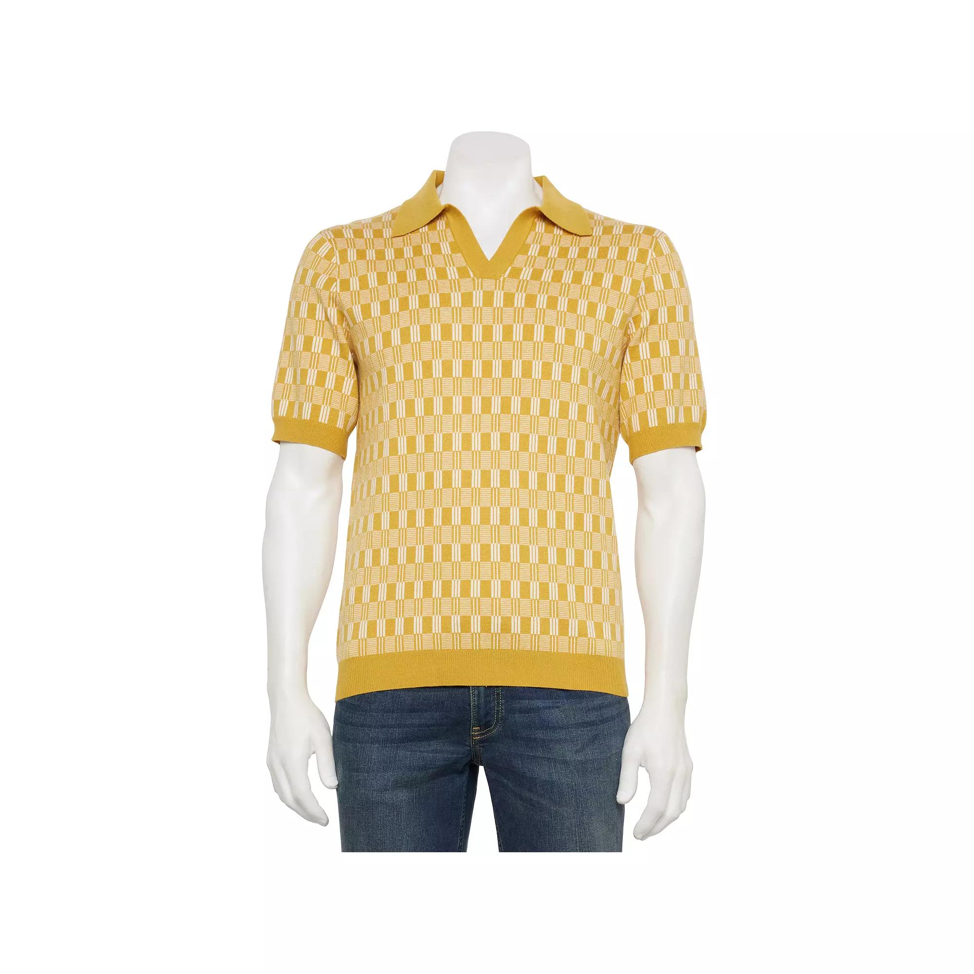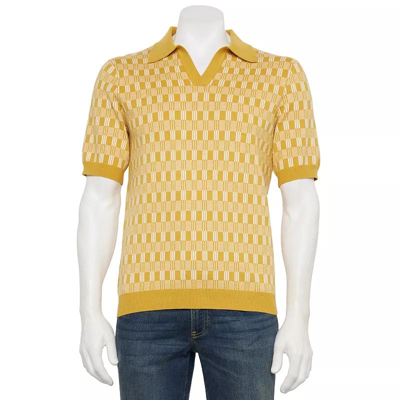 You simply cant beat the timeless look and comfy feel of this mens short sleeve sweater polo shirt from Thomas Sterling. Click on this MENS GUIDE to find the perfect fit and more! You simply cant beat the timeless look and comfy feel of this mens short sleeve sweater polo shirt from Thomas Sterling. Click on this MENS GUIDE to find the perfect fit and more! FEATURES V-neck with collar Short sleevesDETAILS Rayon, polyester, nylon Machine wash Imported Color: Gold. Gender: male. Age Group: adult.