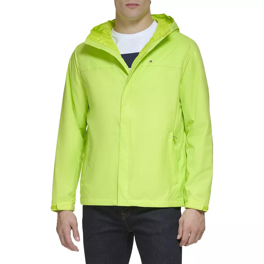 A perfect blend of style and functionality, this men's Tommy Hilfiger hooded rain jacket is designed to keep you dry. Click on this MEN'S GUIDE to find the perfect fit and more!A perfect blend of style and functionality, this men's Tommy Hilfiger hooded rain jacket is designed to keep you dry. Click on this MEN'S GUIDE to find the perfect fit and more!FEATURES Water resistant Lightweight Attached hood Front zipper closure Long sleeves Two front zipper pockets Vented hemFABRIC & CARE Polyester Lining: polyster Machine wash - Delicate Imported Size: XL. Color: Lime. Gender: male. Age Group: adult.