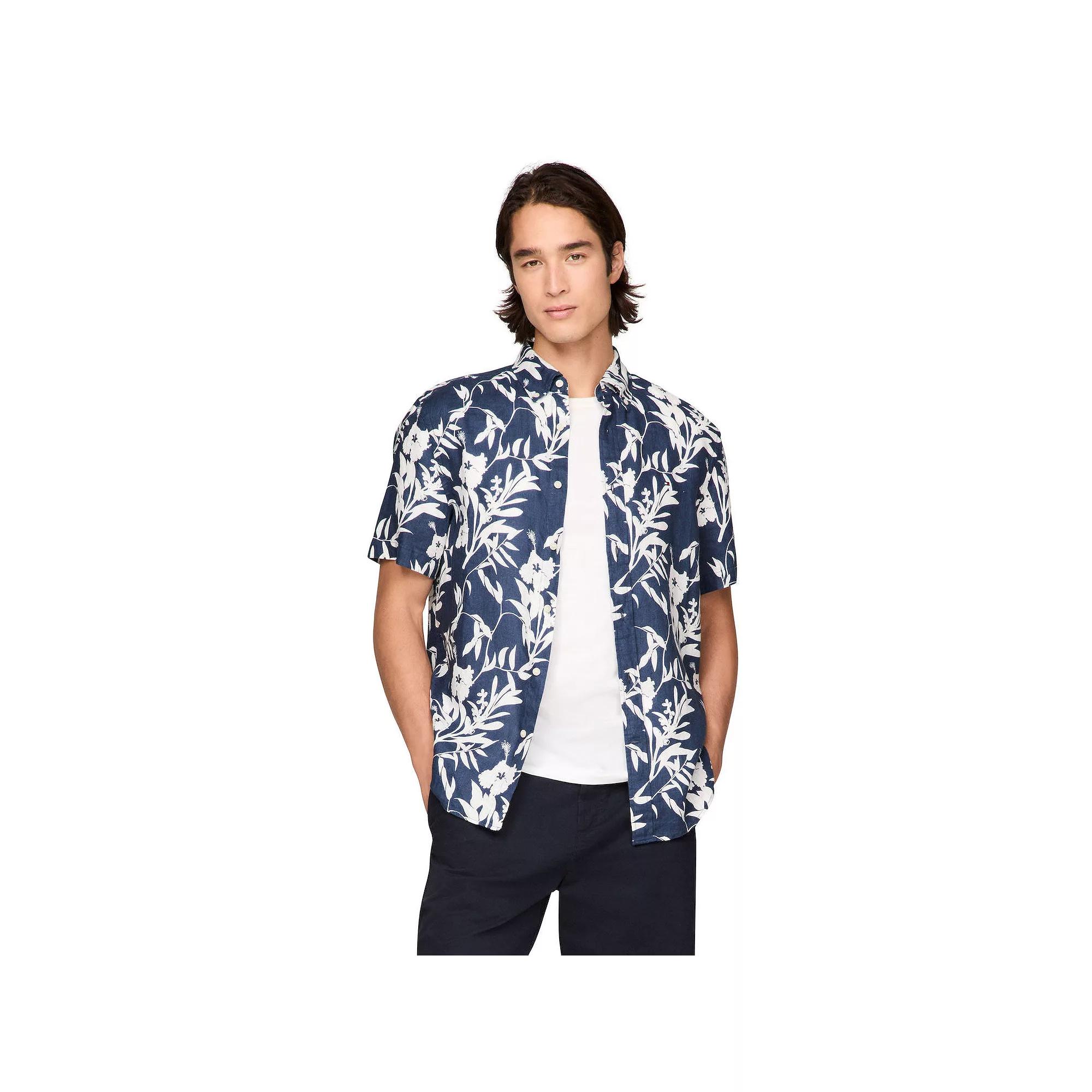 Elevate your classic wardrobe with the timeless style of this Mens Tommy Hilfiger Linen Floral Shirt. Click on this MENS GUIDE to find the perfect fit and more!Elevate your classic wardrobe with the timeless style of this Mens Tommy Hilfiger Linen Floral Shirt. Click on this MENS GUIDE to find the perfect fit and more! target=_blank>FEATURES Button front Short sleeve 100% LinenFABRIC & CARE 100% Linen Machine wash Imported Color: Night. Gender: male. Age Group: adult.