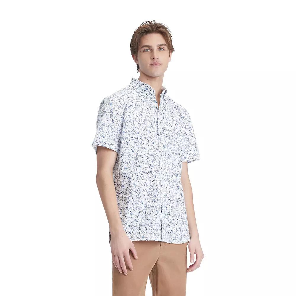 Youll love the classic look and comfortable feel of this mens stretch short sleeve oxford button-down shirt from Tommy Hilfiger. Youll love the classic look and comfortable feel of this mens stretch short sleeve oxford button-down shirt from Tommy Hilfiger. FEATURES Collared neckline Button-front closure Short sleeves Slip pocket on chestFIT & SIZING Regular fitFABRIC & CARE Cotton, elastane Machine wash Imported Color: White. Gender: male. Age Group: adult.