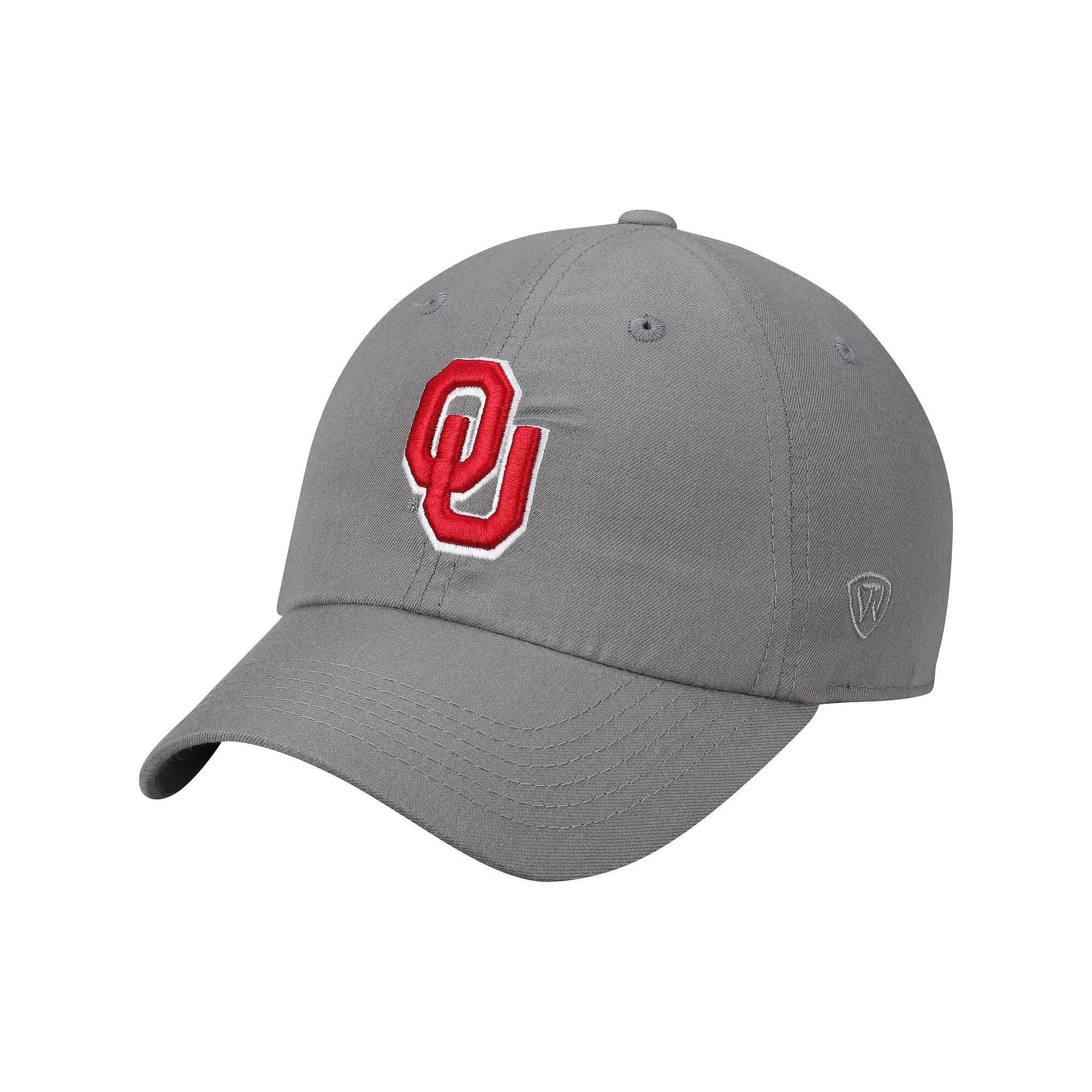 Your enthusiasm for the team will reach new heights when you get this Oklahoma Sooners Staple adjustable hat from Top of the World.Your enthusiasm for the team will reach new heights when you get this Oklahoma Sooners Staple adjustable hat from Top of the World.Unstructured relaxed fitSurface washableOfficially licensedSix panels with eyeletsWoven clip tag on backBrand: Top of the WorldOne size fits mostRaised embroideryMaterial: 100% PolyesterLow crownImportedAdjustable fabric strap with slide buckleCurved bill Color: Grey. Gender: male. Age Group: adult.