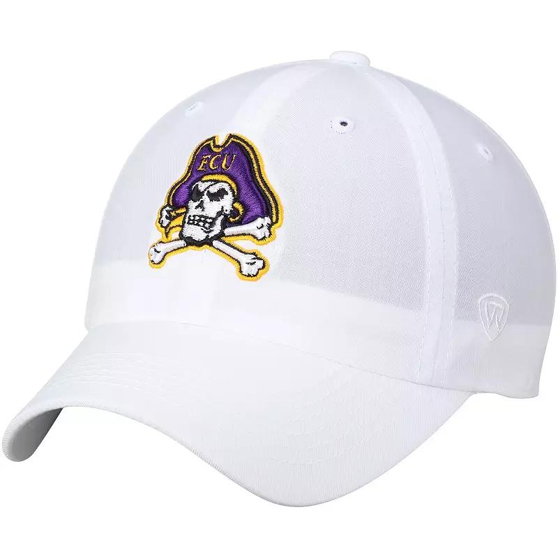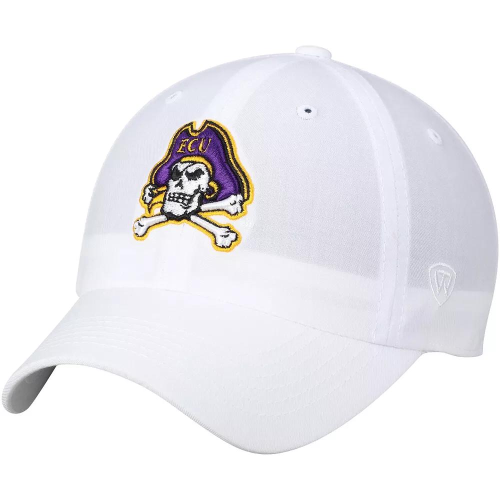 Your enthusiasm for the team will reach new heights when you get this ECU Pirates Staple adjustable hat from Top of the World.Your enthusiasm for the team will reach new heights when you get this ECU Pirates Staple adjustable hat from Top of the World.Material: 100% PolyesterLow crownUnstructured relaxed fitCurved billAdjustable fabric strap with slide buckleSix panels with eyeletsOne size fits mostRaised embroideryWoven clip tag on backSurface washableOfficially licensedImportedBrand: Top of the World Color: White. Gender: male. Age Group: adult.