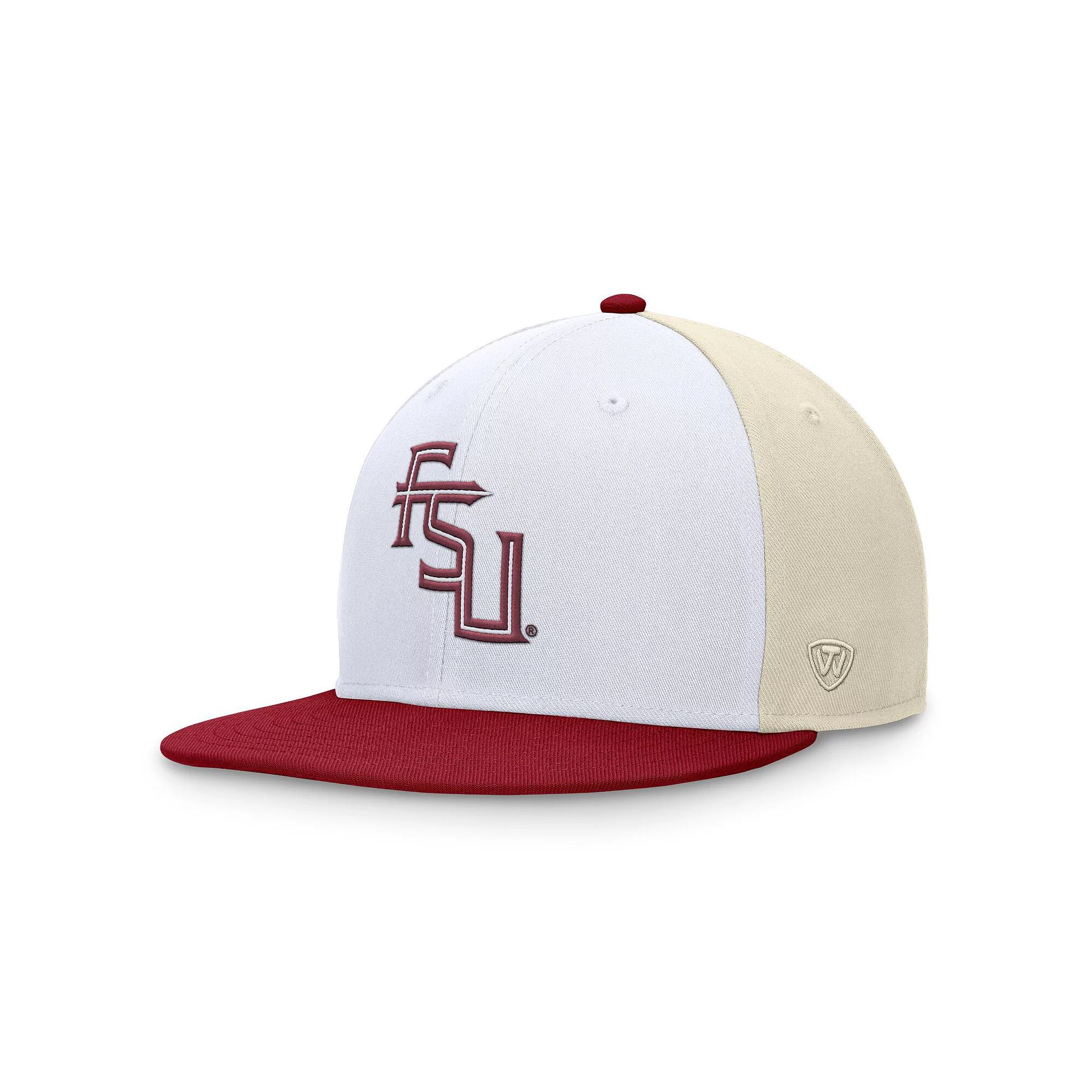 Celebrate your Florida State Seminoles fandom with this Tri-Tone Heritage Collector Fitted Hat from Top of the World. This hat boasts embroidered team logos on the crown and back, letting you showcase your Seminoles pride from every angle. With its classic six-panel construction and eyelets for ventilation, this fitted hat offers a timeless look and comfortable feel.Celebrate your Florida State Seminoles fandom with this Tri-Tone Heritage Collector Fitted Hat from Top of the World. This hat boasts embroidered team logos on the crown and back, letting you showcase your Seminoles pride from every angle. With its classic six-panel construction and eyelets for ventilation, this fitted hat offers a timeless look and comfortable feel.PRODUCT FEATURESEmbroidered team logos on the crown and backBrand: Top of the WorldStructured fitOfficially licensedHigh CrownFlat billFittedMaterial: 100% CottonSix panels with eyeletsImportedWipe clean with a damp cloth Size: 7. Color: White. Gender: male. Age Group: adult.
