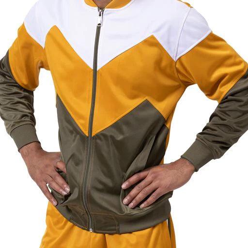 Men's Track Suit Chevron Design in Gold & Olive Male