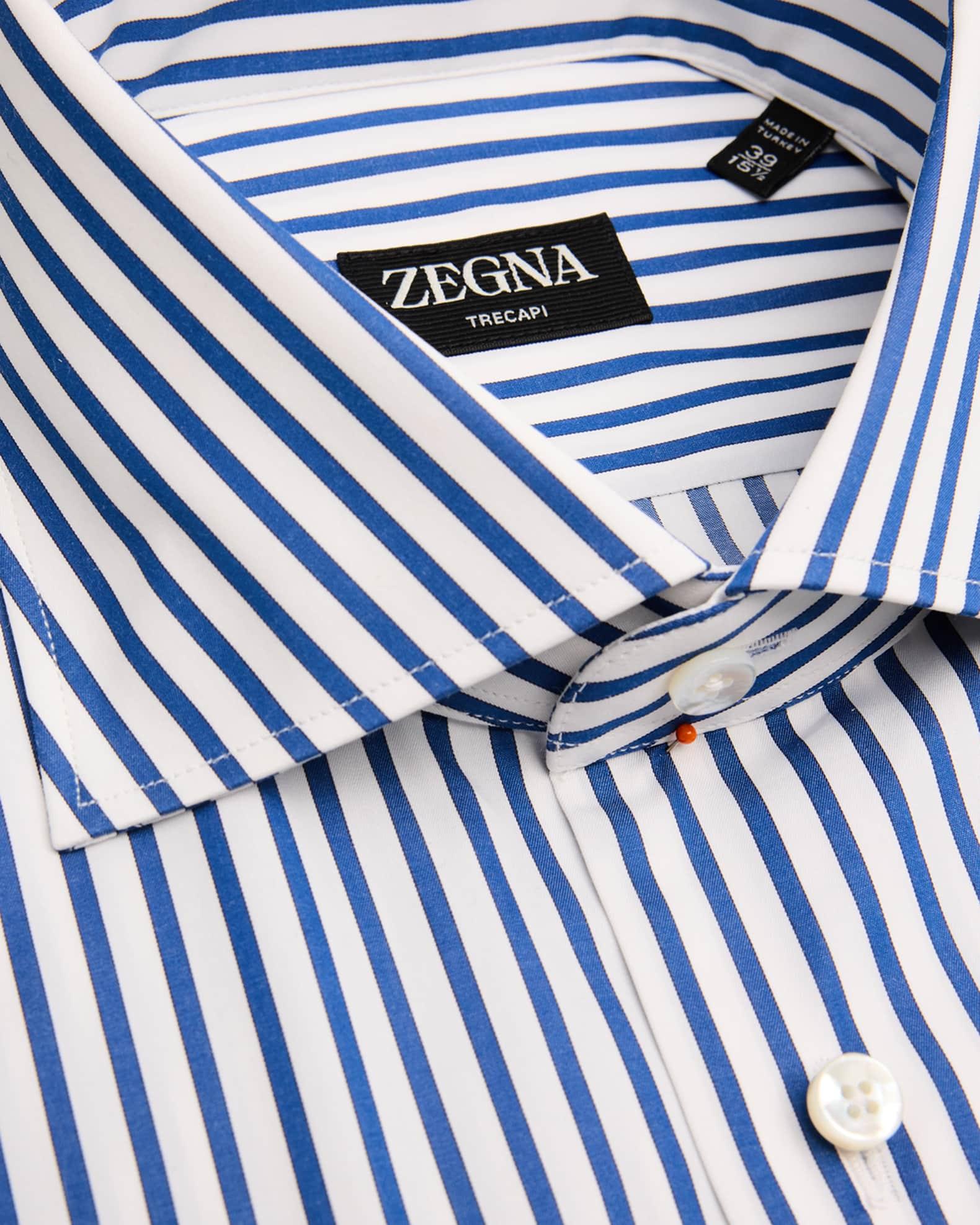 ZEGNA dress shirt in Trecapi cotton highlighted with bold Bengal stripes Trecapi is made from ultra-fine, triple-twisted cotton fibers for added durability and resilience Spread collar Button placket Long sleeves Mitered barrel cuffs Shirttail hem Cotton Dry clean, machine wash line dry Imported