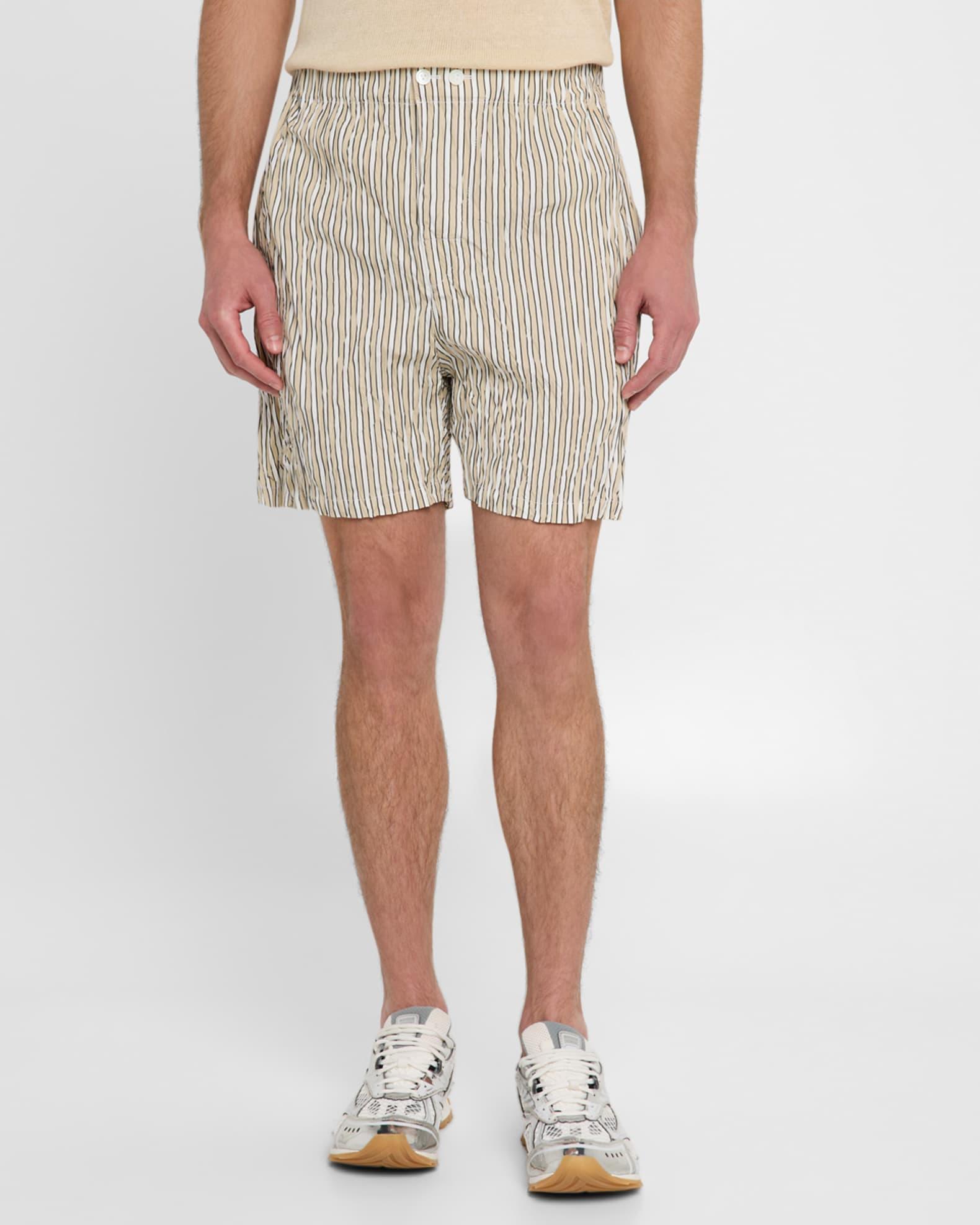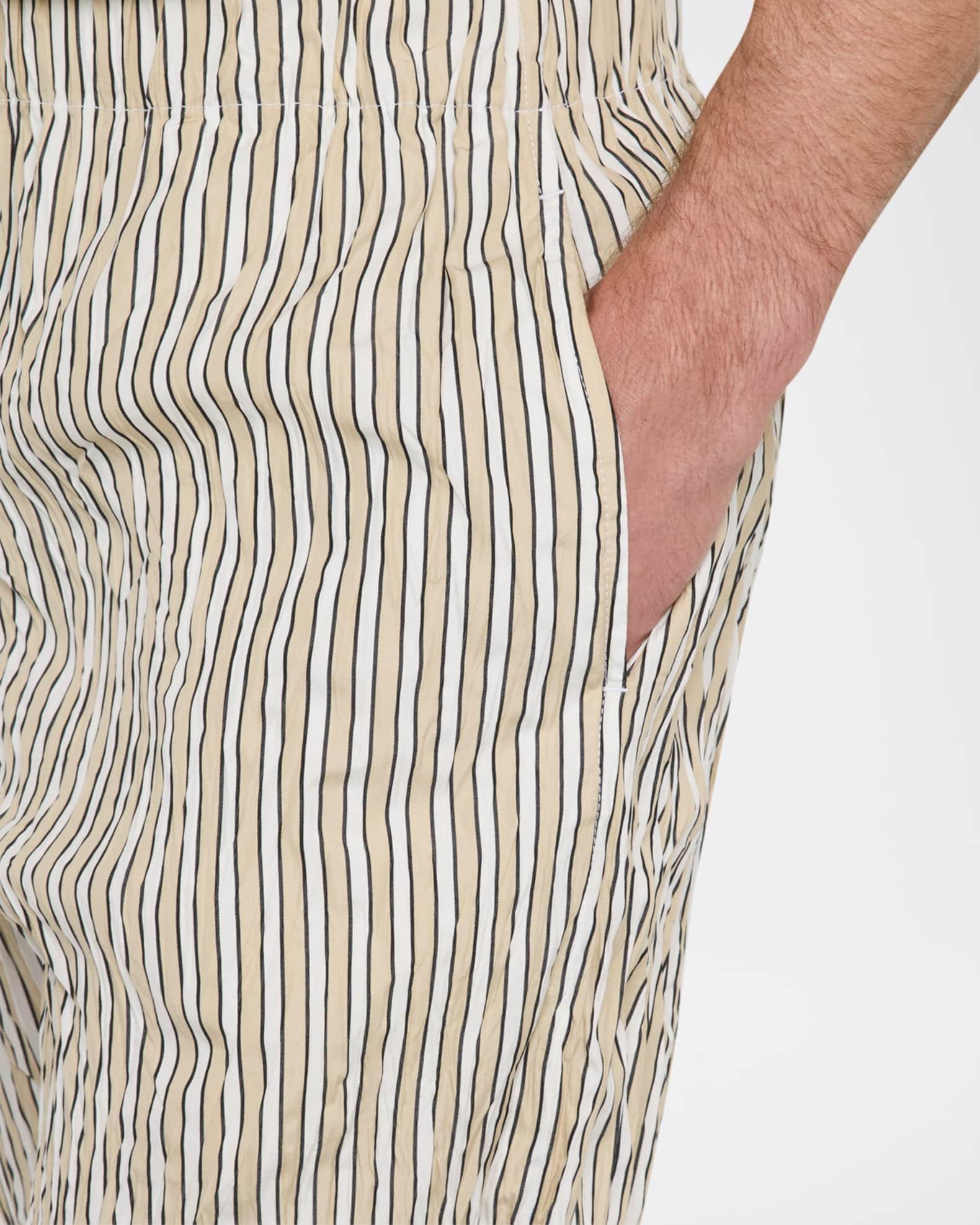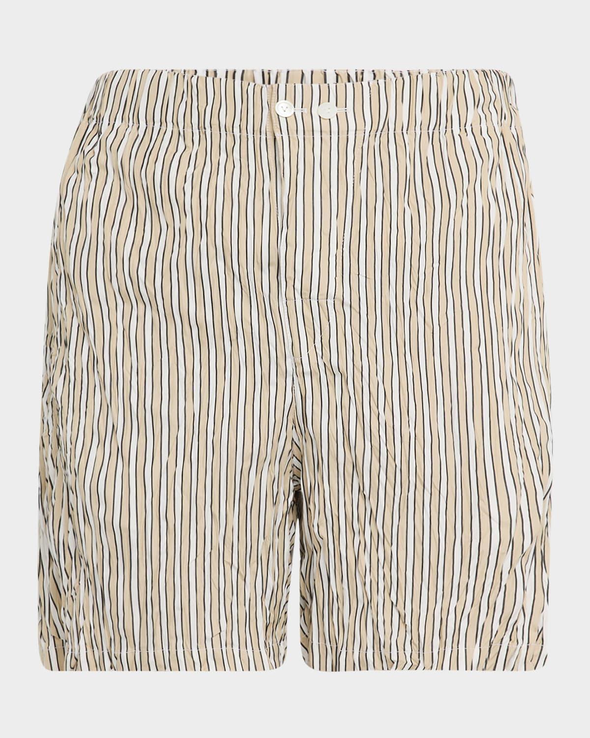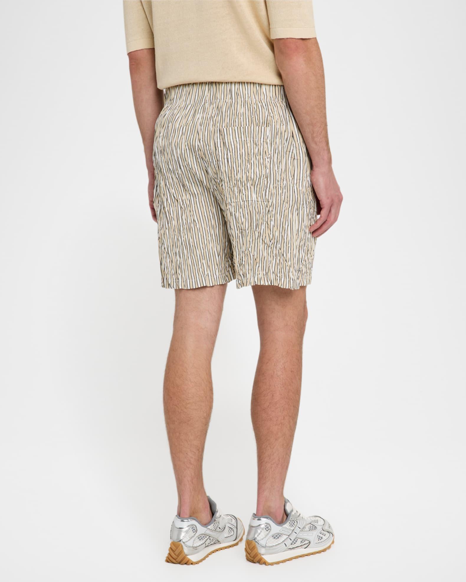 Bottega Veneta shorts in tricolor stripes Crinkled effect Elasticized waist Regular rise Two-button closure Side slip pockets Back patch pocket Relaxed legs Pull-on style Cotton Made in Italy