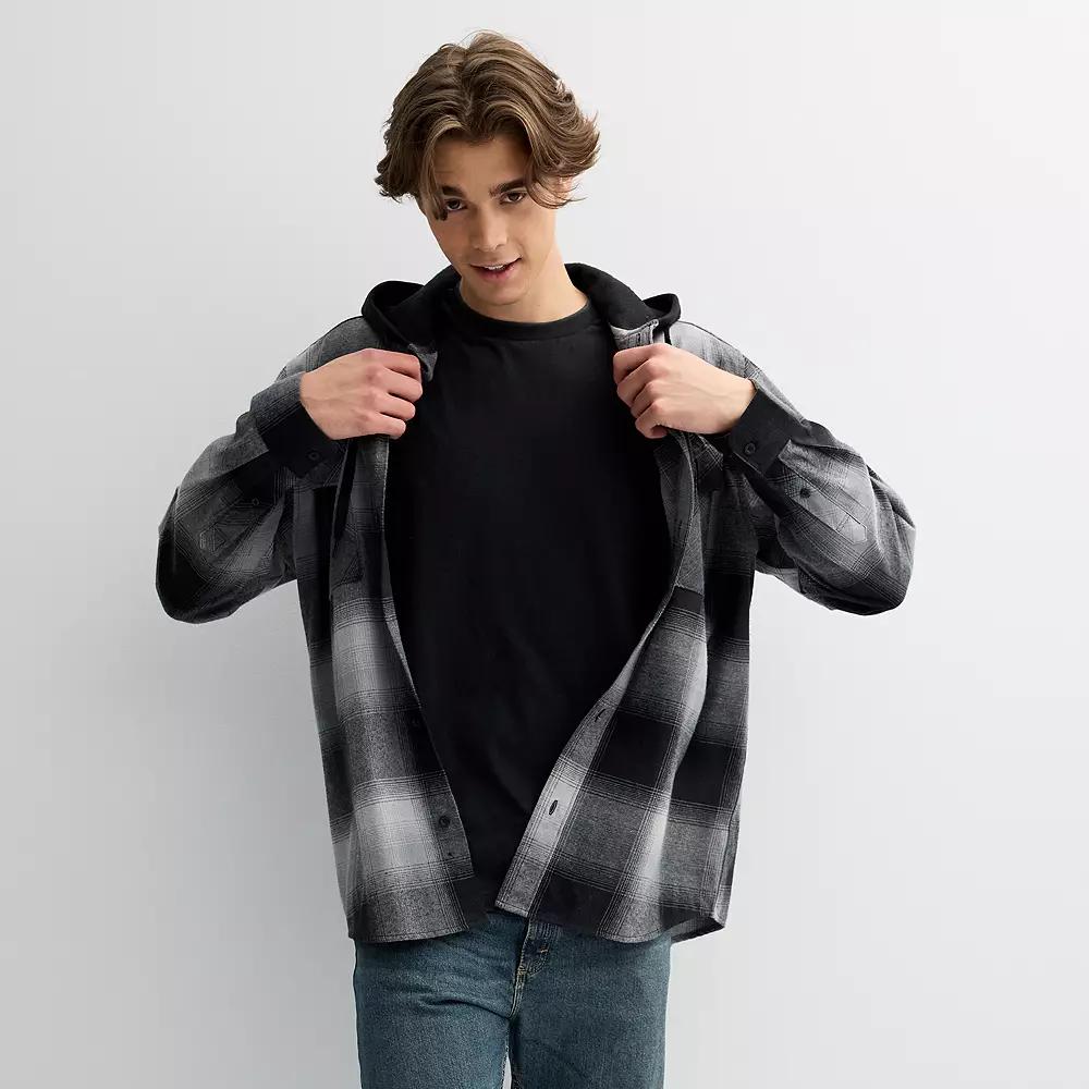 Layer in style with this Mens Trinity Coast Hooded Flannel Shirt. Click on this MENS GUIDE to find the perfect fit and more! Layer in style with this Mens Trinity Coast Hooded Flannel Shirt. Click on this MENS GUIDE to find the perfect fit and more! FEATURES Button closure Attached hood Cuffed Rounded Long sleeve 2 front pocketsFABRIC & CARE Cotton, polyester Machine wash Imported Size: XXL. Color: Black. Gender: male. Age Group: adult.