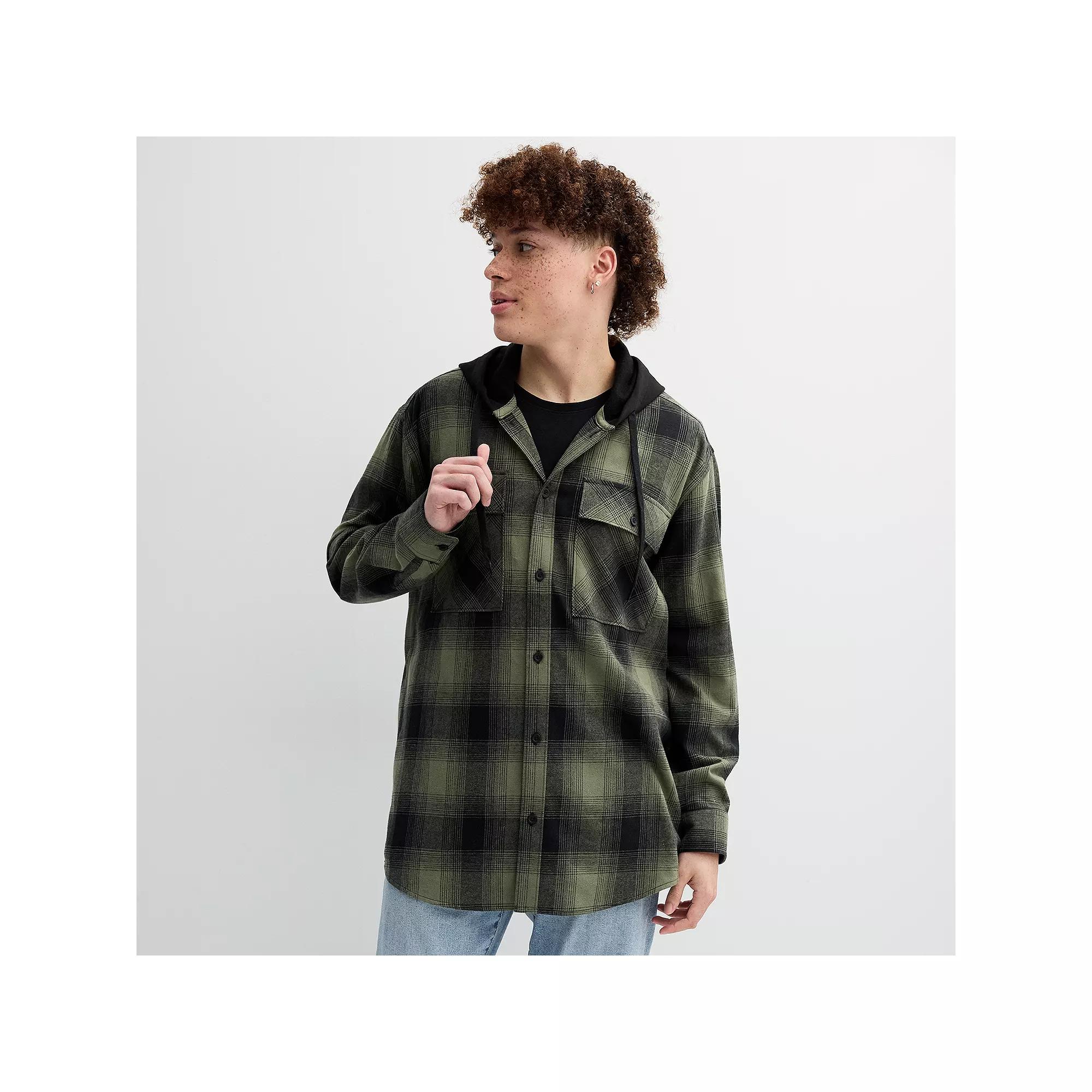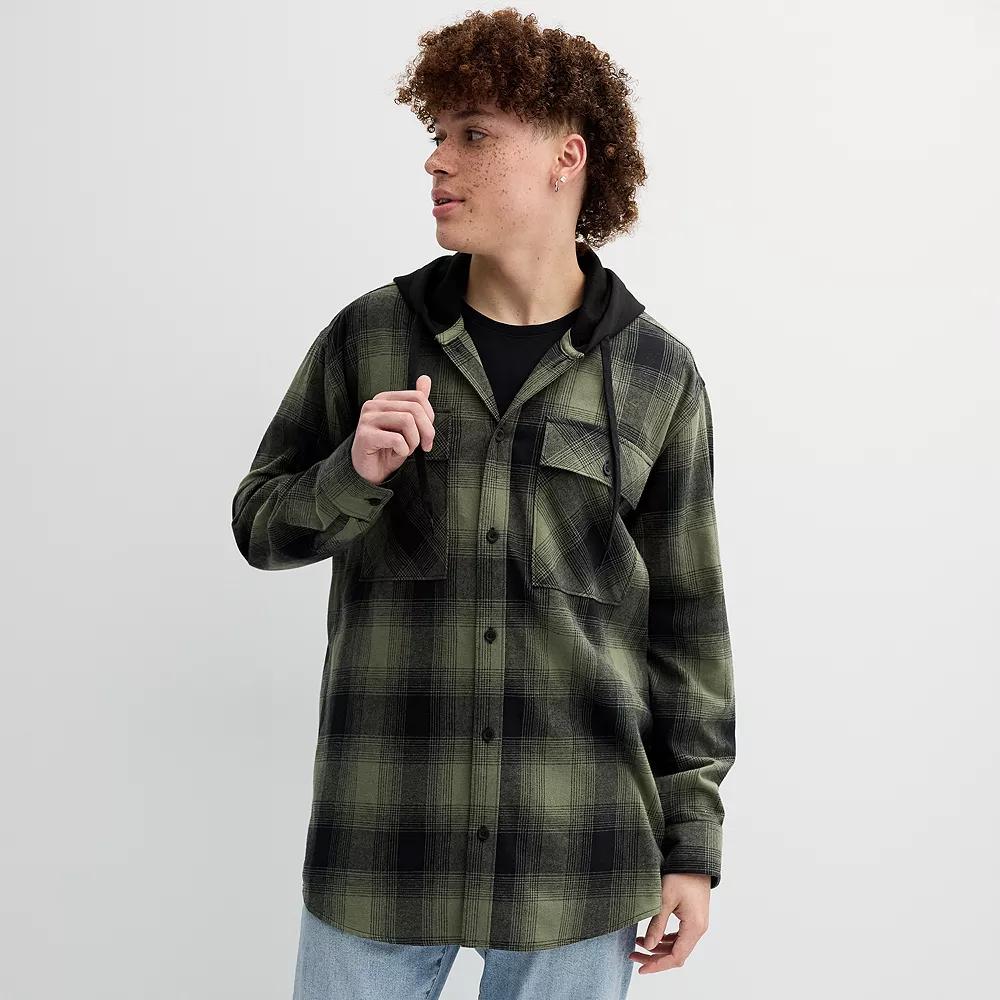 Layer in style with this Mens Trinity Coast Hooded Flannel Shirt. Click on this MENS GUIDE to find the perfect fit and more! Layer in style with this Mens Trinity Coast Hooded Flannel Shirt. Click on this MENS GUIDE to find the perfect fit and more! FEATURES Button closure Attached hood Cuffed Rounded Long sleeve 2 front pocketsFABRIC & CARE Cotton, polyester Machine wash Imported Size: XXL. Color: Olive. Gender: male. Age Group: adult.