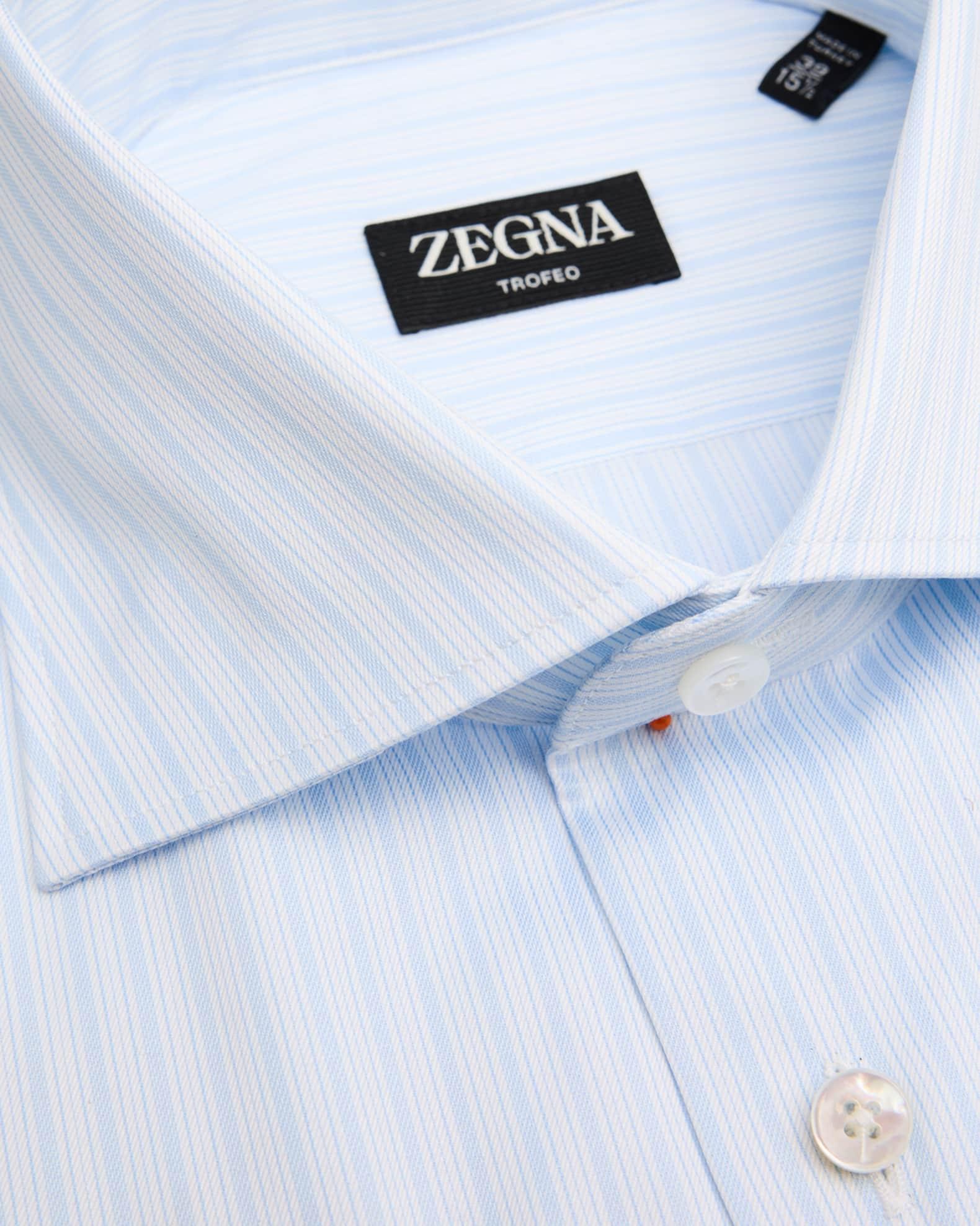 ZEGNA dress shirt in distinctive Trofeo™ cotton, accented with a multi-stripe print Trofeo cotton is made from fine, long fibers for a silky smooth finish and added wrinkle-resistance Spread collar Button placket Long sleeves Round barrel cuffs Shirttail hem Cotton Dry clean, machine wash line dry Imported