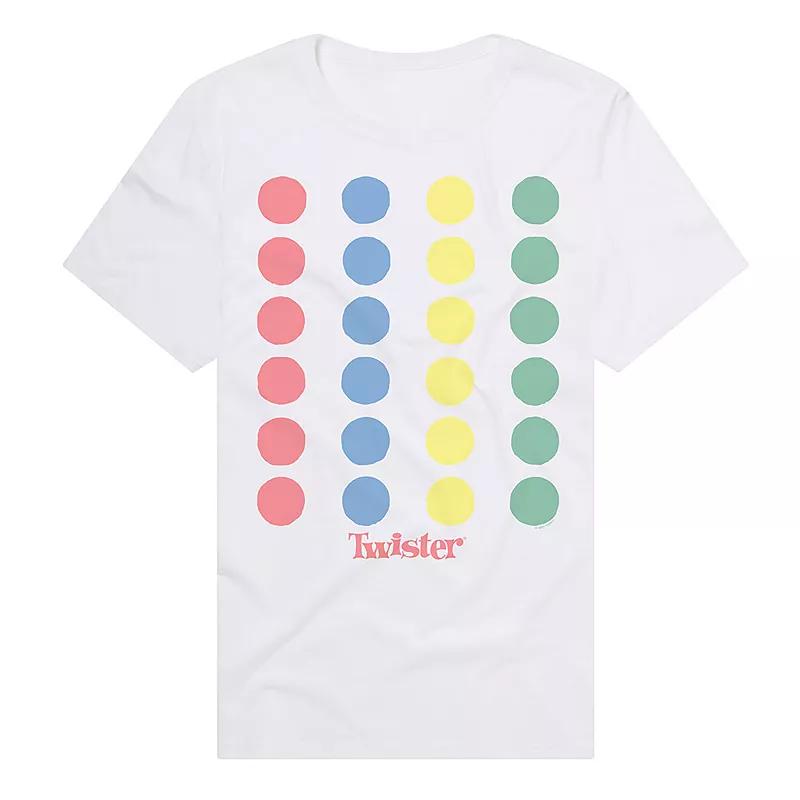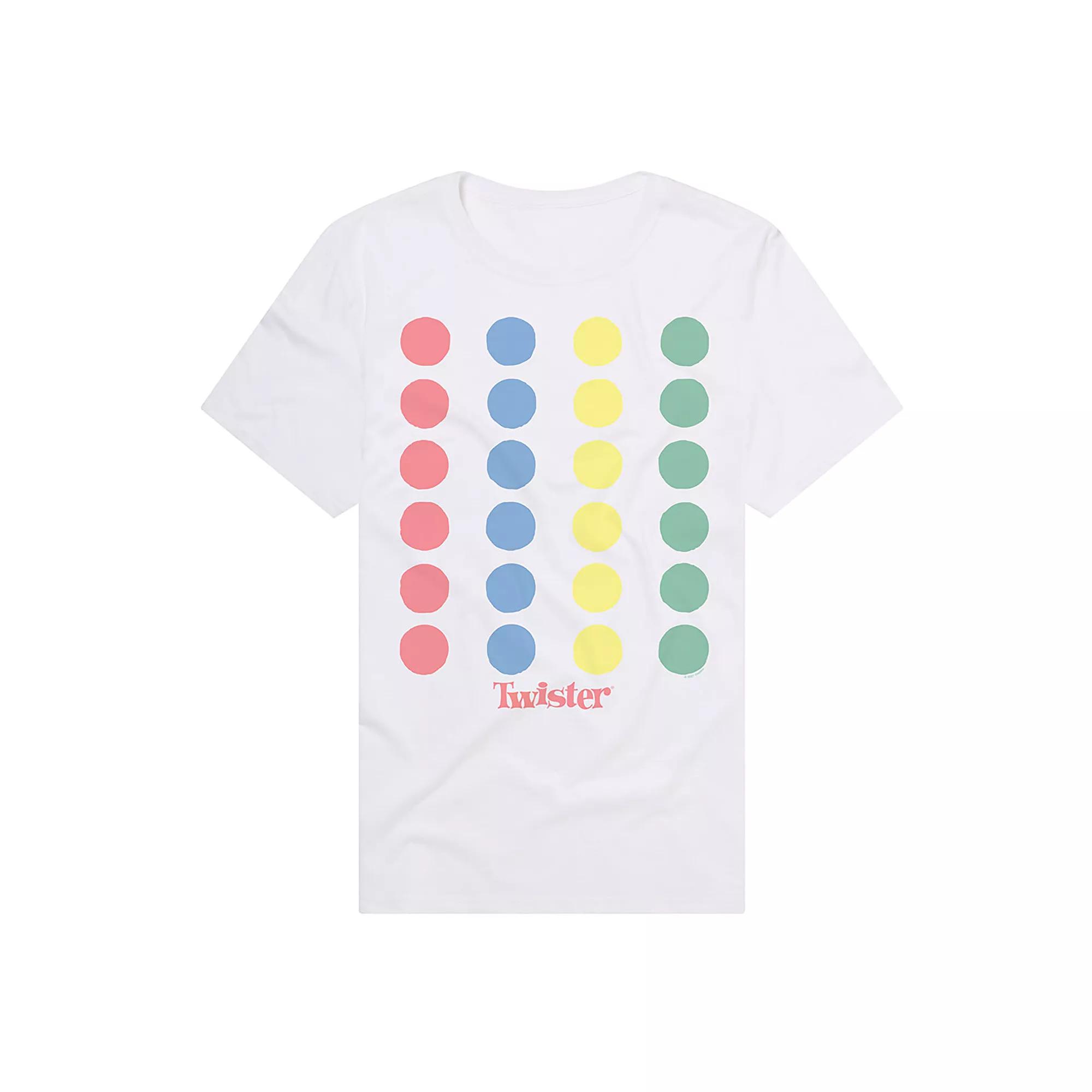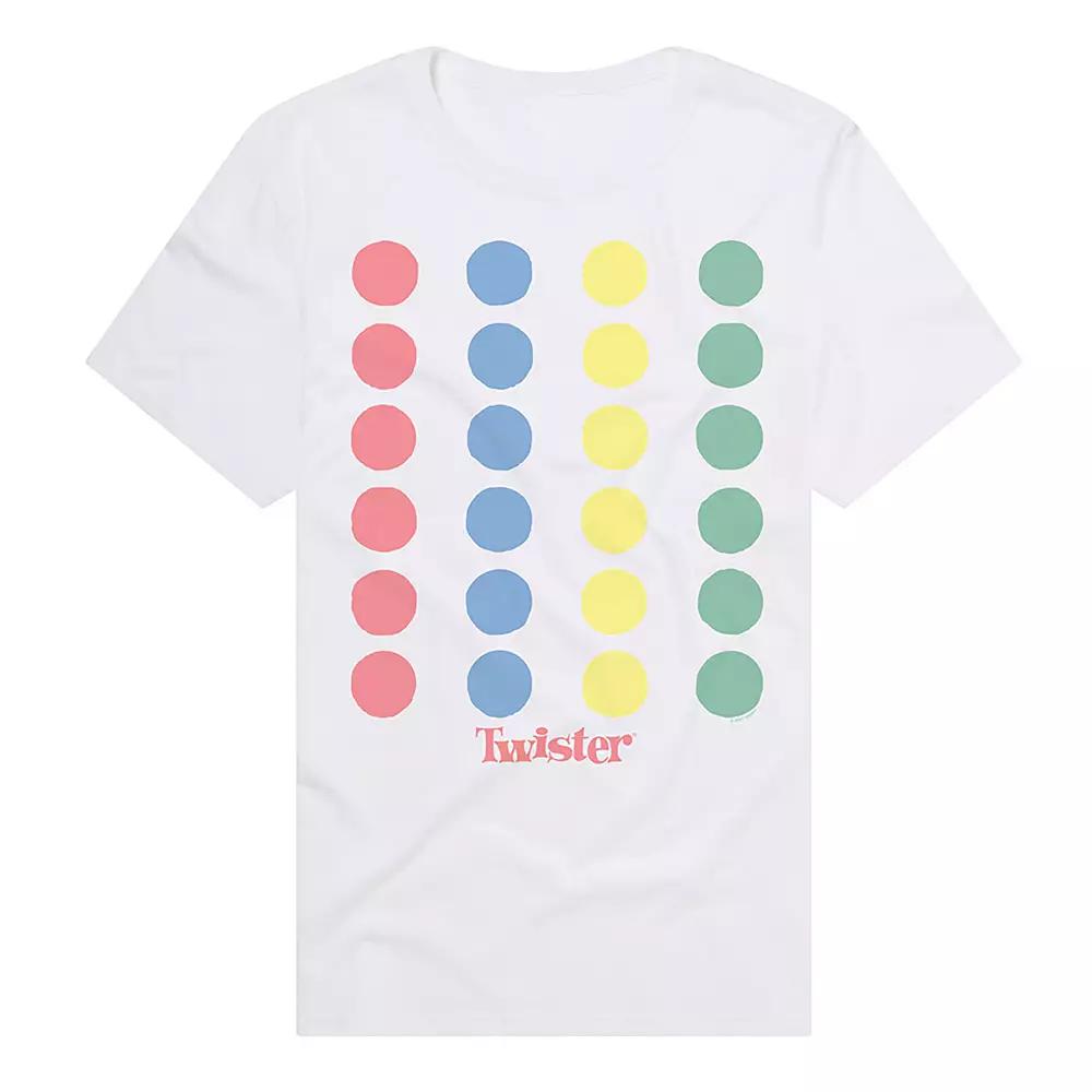 Add a pop of fun to your wardrobe with this colorful Twister T-shirt, perfect for fans of the classic game. Click on this MEN'S GUIDE to find the perfect fit and more!. FEATURES Crewneck Short sleeveFABRIC & CARE Cotton Machine wash Imported Color: White. Gender: male. Age Group: adult.