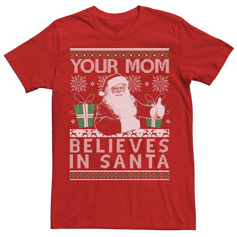 Hell love wearing this Mens Ugly Sweater Your Mom Believes In Santa Holiday Graphic Tee. Crewneck Short sleevesFABRIC & CARE Cotton Machine wash Imported Size: XXL. Color: Red. Gender: male. Age Group: adult.