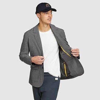 Our updated travel blazer features 2-way stretch fabric and extra interior pockets for enhanced utility and security while on the road. The polyester/spandex blend has a durable, water-repellent finish that causes moisture to bead and roll off rather than soak into the fabric.