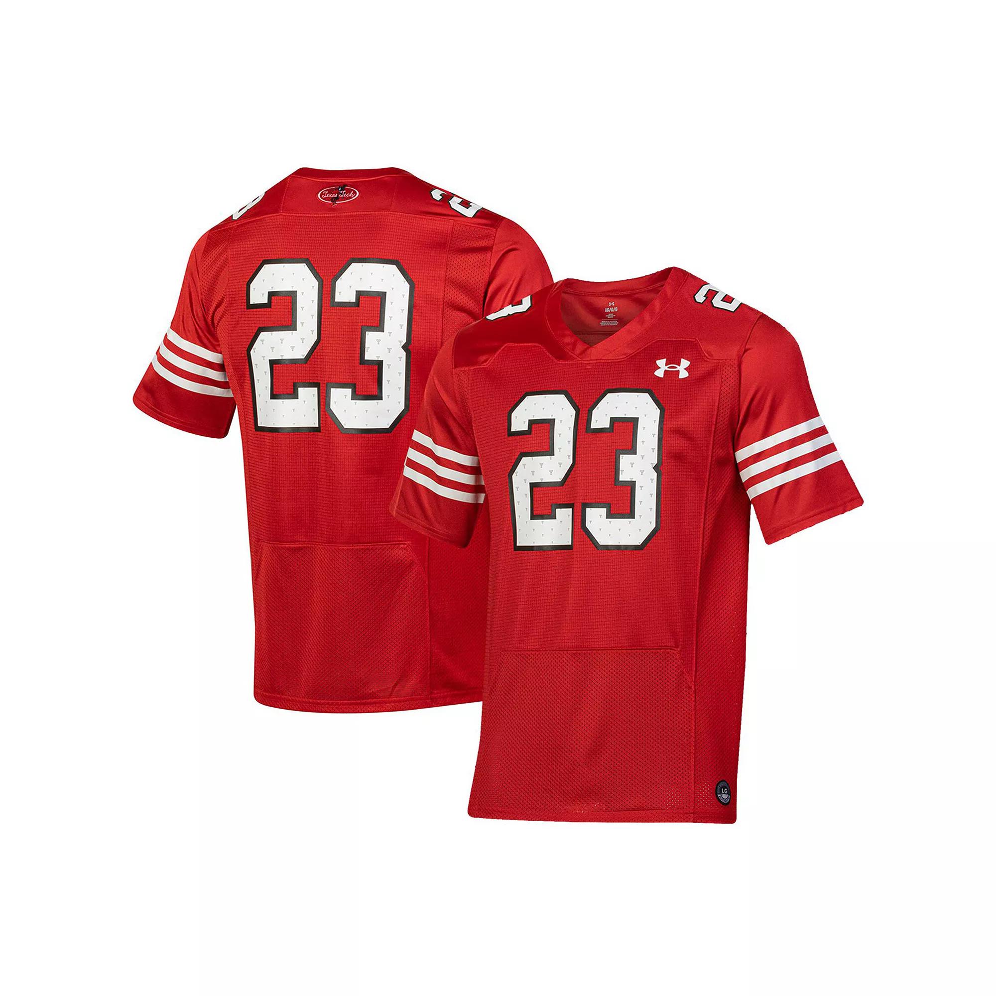 Represent your Texas Tech Red Raiders in a classic way with this #23 Throwback Replica Jersey from Under Armour. This jersey is perfect for keeping you cool whether you are at the game or at home watching the action. Along with timeless Texas Tech Red Raiders graphics, this shirt will quickly become your favorite in your collection.Represent your Texas Tech Red Raiders in a classic way with this #23 Throwback Replica Jersey from Under Armour. This jersey is perfect for keeping you cool whether you are at the game or at home watching the action. Along with timeless Texas Tech Red Raiders graphics, this shirt will quickly become your favorite in your collection.PRODUCT FEATURESMesh panelsReplicaImportedMaterial: 100% PolyesterBrand: Under ArmourWoven tagMachine wash, tumble dry lowOfficially licensedScreen print graphicsShort sleeveV-neck Size: 3XL. Gender: male. Age Group: adult.