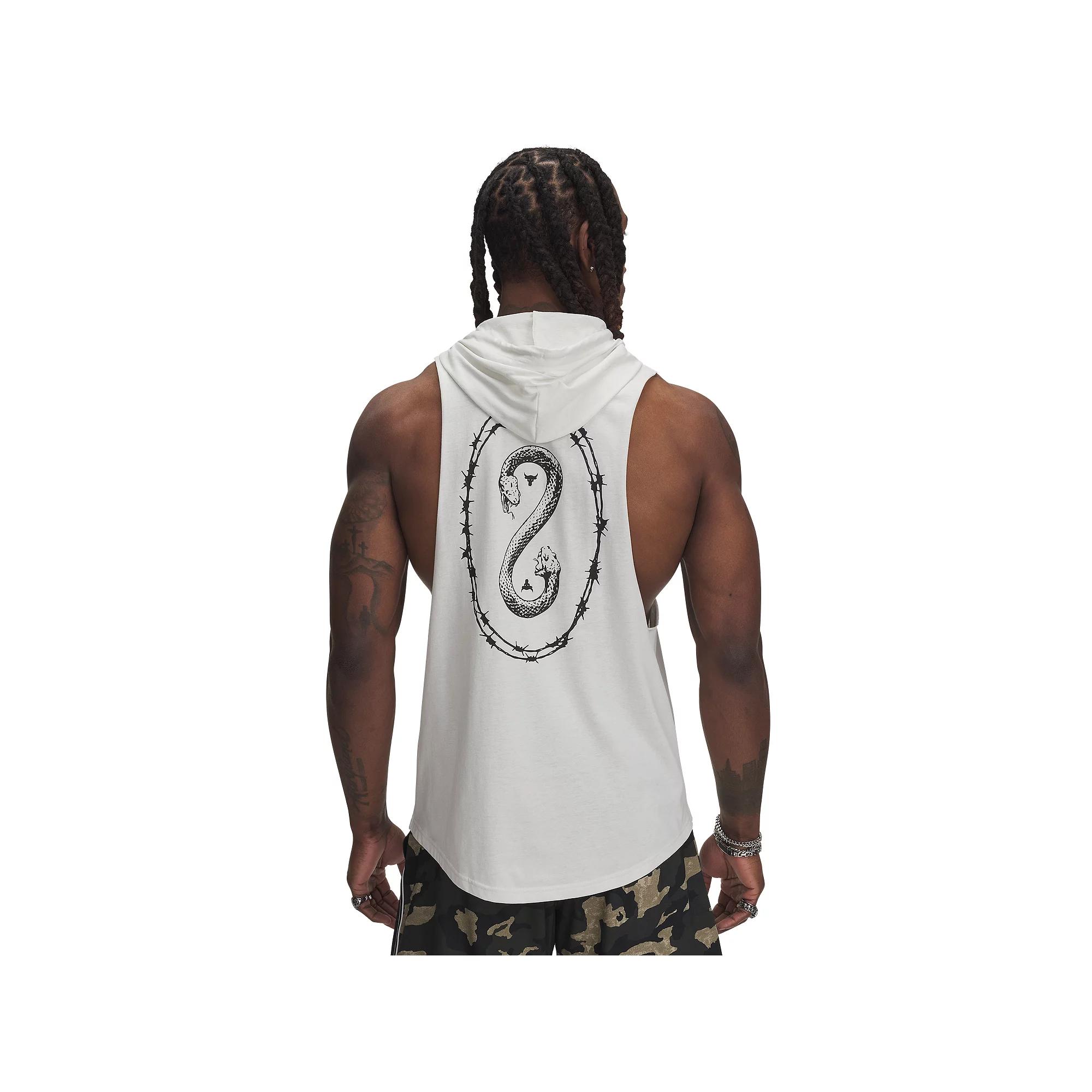 Gear up for even the toughest workouts with this mens Under Armour Project Rock Snake sleeveless hoodie.TECHNOLOGIES & FEATURES Project Rock training gear was built to help you find boundaries, then push right through them Super-soft, cotton-blend fabric provides all-day comfort Breathable Front kangaroo pocket Dropped, shaped hem for enhanced coverage Attached hood Crewneck Sleeveless with generous dropped armholes for full range of movementFABRIC & CARE Cotton, polyester Machine wash Imported /* desktop styles */ #aboutTheBrandTabContent h2 { font: 1.25em Gotham 7r, Helvetica, Arial, sans-serif; color: #3e3935; padding-top: .75em; } #aboutTheBrandTabContent p { font: .88em/1.62 Gotham 5r, Helvetica, Arial, sans-serif; } #aboutTheBrandTabContent a { font: .88em Gotham 5r, Helvetica, Arial, sans-serif; } /* mcom styles */ #acc-aboutTheBrand h2 { font: 1.25em Gotham 7r, Helvetica, Arial, sans-serif; color: #3e3935; padding-top: .75em; text-align: center; } #acc-aboutTheBrand p{ font: 1.06em/1.62 Gotham 5r, Helvetica, Arial, sans-serif; width: auto; text-align: center; } #acc-aboutTheBrand a{ font: 1.1em Gotham 5r, Helvetica, Arial, sans-serif; width: auto; text-align: center; } The idea for Under Armour was born on a football field in 1996when Special Teams captain Kevin Plank looked down at his heavy, sweaty cotton T-shirt and thought: Theres got to be a better T-shirt for this.There wasnt. So, he made oneand it made athletes feel lighter, stronger, faster. It changed the way athletes dress forever. Now, Under Armour is a global company deeply rooted in the culture of sport and makes shoes and gear for athletes that go beyond the game. At the end of the day, the purpose remains the same ... build gear that makes you BETTER.Shop the Under Armour Collection Now. Color: Green. Gender: male. Age Group: adult.