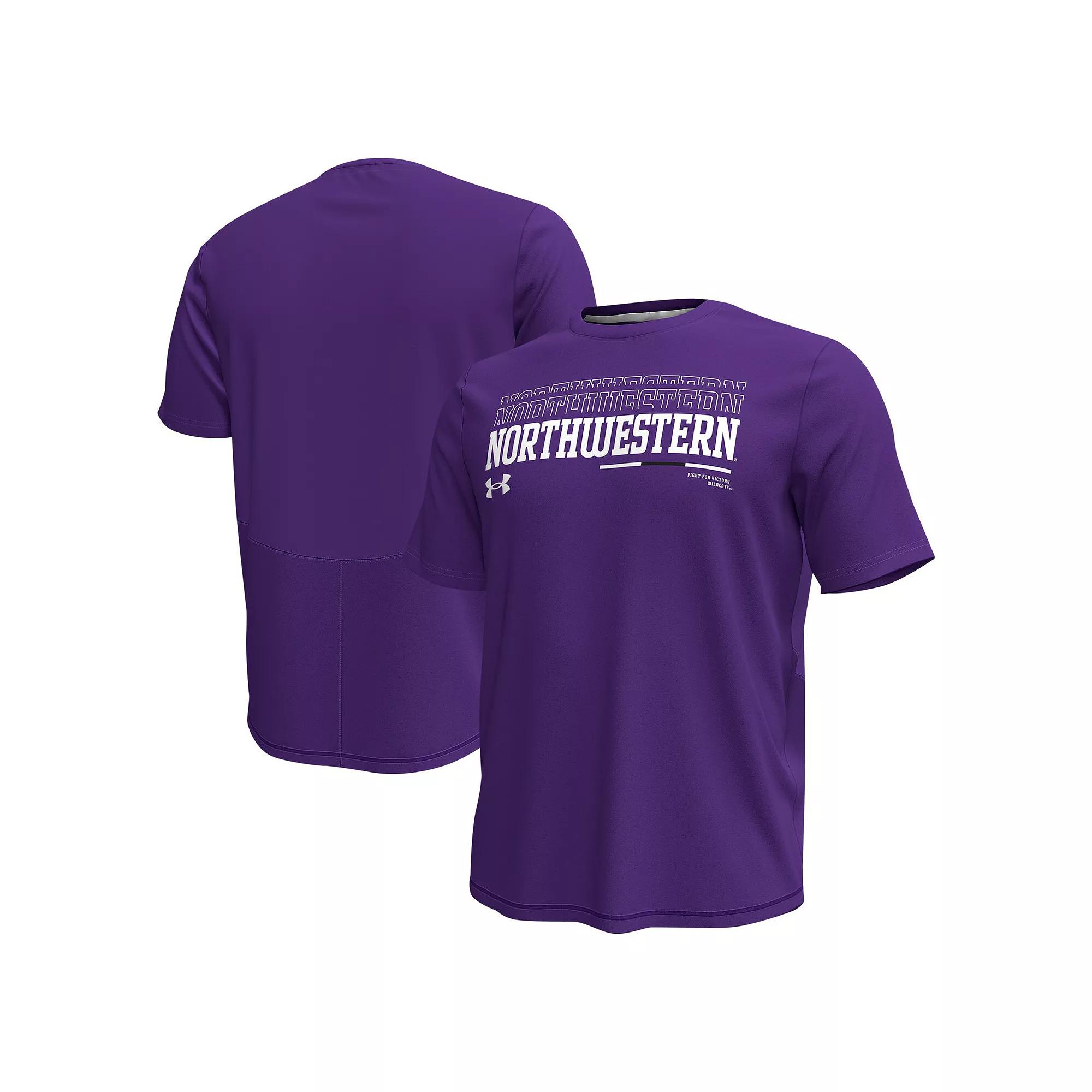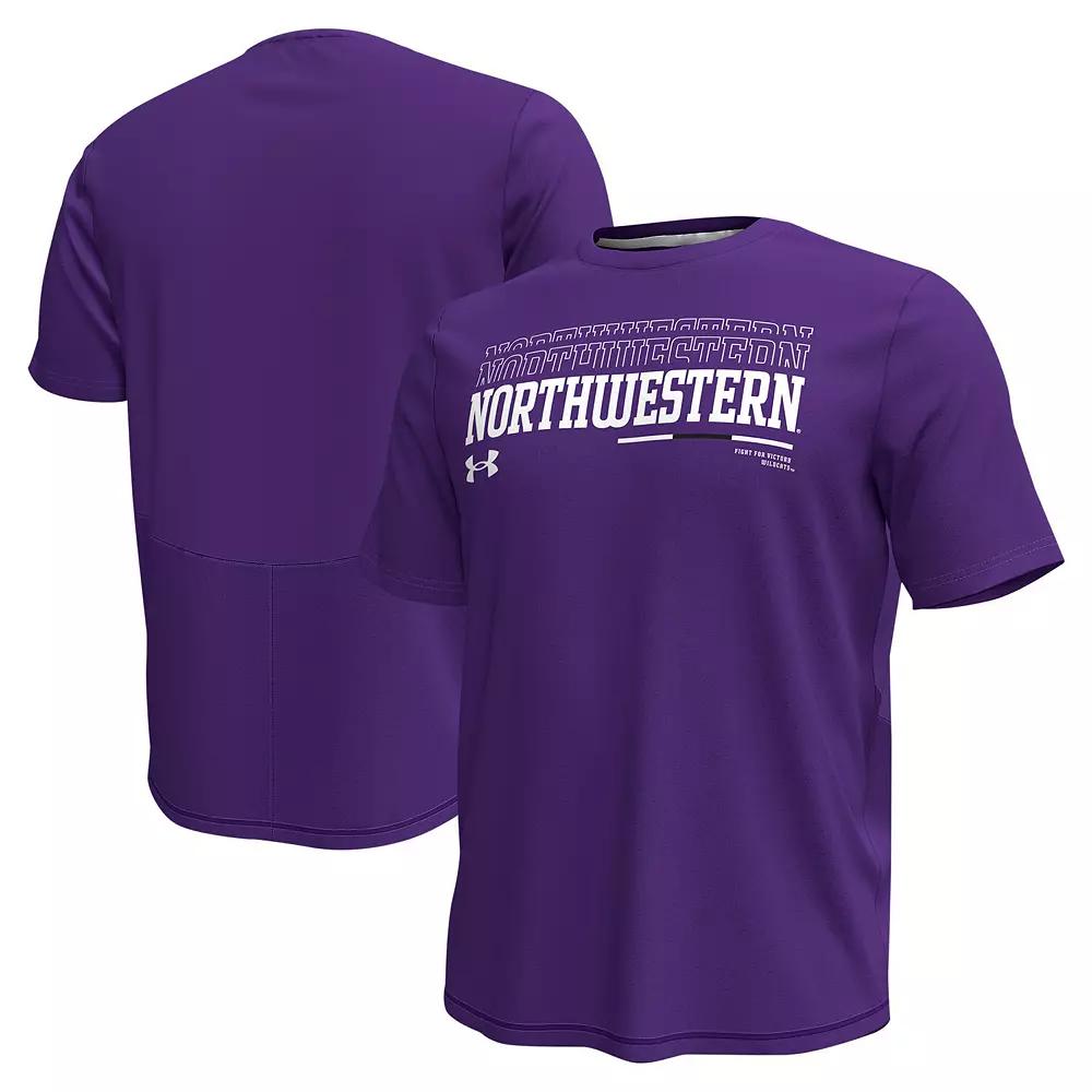 Show your Northwestern Wildcats pride with this Sideline Knockout T-shirt from Under Armour. This sporty tee features repeating Northwestern Wildcats graphics printed across the chest, ensuring your fandom takes center stage. Four-way stretch fabrication, paired with strategically-placed mesh panels, ensures youll stay cool and dry whether youre cheering from the stands or hitting the weight room.Show your Northwestern Wildcats pride with this Sideline Knockout T-shirt from Under Armour. This sporty tee features repeating Northwestern Wildcats graphics printed across the chest, ensuring your fandom takes center stage. Four-way stretch fabrication, paired with strategically-placed mesh panels, ensures youll stay cool and dry whether youre cheering from the stands or hitting the weight room.PRODUCT FEATURESStrategic mesh panels for added ventilation where you need itCrew neckShort sleeveMoisture-wicking technology to keep you cool and dryOfficially licensedMaterial: 90% Polyester/10% ElastaneFour-way stretch fabric moves better in every directionMachine wash, tumble dry lowRounded droptail hem for enhanced coverageImportedBrand: Under ArmourRepeating team name graphic printed on center chest Color: Purple. Gender: male. Age Group: adult. Material: Cotton.