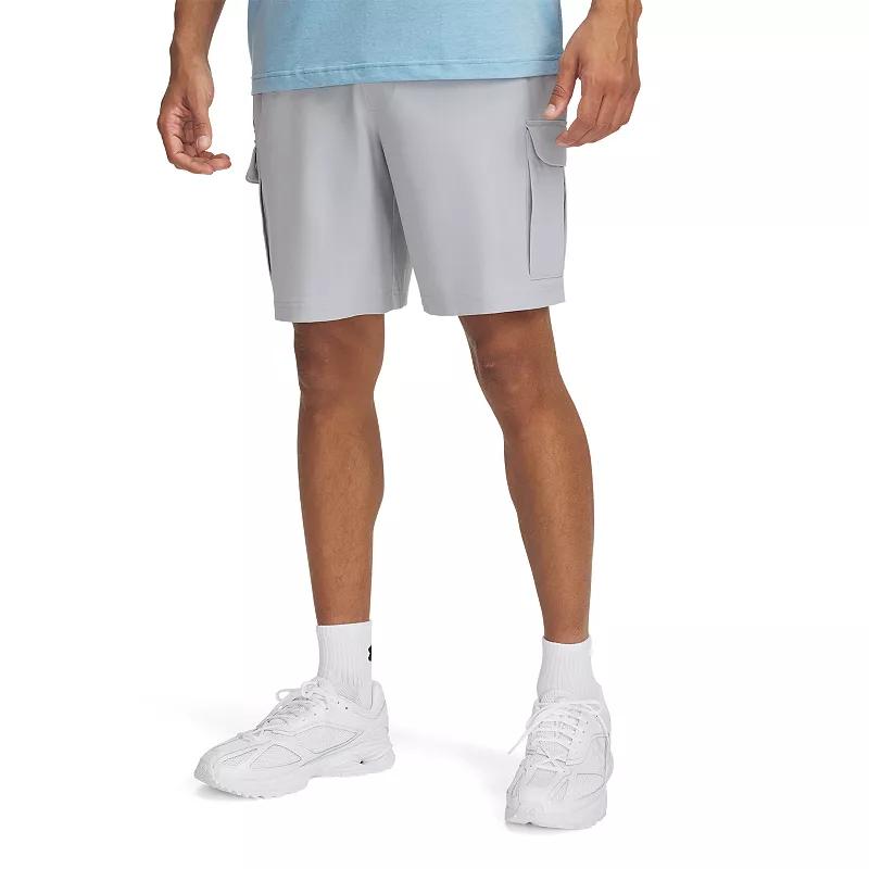 Enjoy the ultimate comfort of these Men's Under Armour Vibe Woven Cargo Shorts. UA Storm technology repels water without sacrificing breathability, while lightweight stretch woven fabric delivers superior comfort & durability. Enjoy the ultimate comfort of these Men's Under Armour Vibe Woven Cargo Shorts. UA Storm technology repels water without sacrificing breathability, while lightweight stretch woven fabric delivers superior comfort & durability. TECHNOLOGIES & FEATURES 4-way stretch fabric Water repellent Breathable Open hand pockets, secure, snap-closure back pocket & flap-closure cargo pocketsFIT & SIZING Regular inseam: 8 in. Midrise sits above the hip Loose fit Lightweight Drawstring elastic waistbandFABRIC & CARE Polyester, elastane Machine wash Imported Size: XXL. Color: Mod Gray. Gender: male. Age Group: adult.