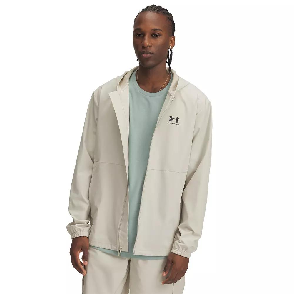 Step into a fresh look with this comfortable and versatile Men's Under Armour Vibe Woven Hooded Windbreaker Jacket. Click on this MEN'S GUIDE to find the perfect fit and more!Step into a fresh look with this comfortable and versatile Men's Under Armour Vibe Woven Hooded Windbreaker Jacket. Click on this MEN'S GUIDE to find the perfect fit and more!TECHNOLOGIES & FEATURES Attached hood Front zip closure Long sleeves Adjustable bottom hem 4-way stretch fabric Breathable water repellent design Lightweight warmth ratingFIT & SIZING Loose fit styleFABRIC & CARE Polyester, elastane Machine wash Imported Color: Khaki. Gender: male. Age Group: adult.