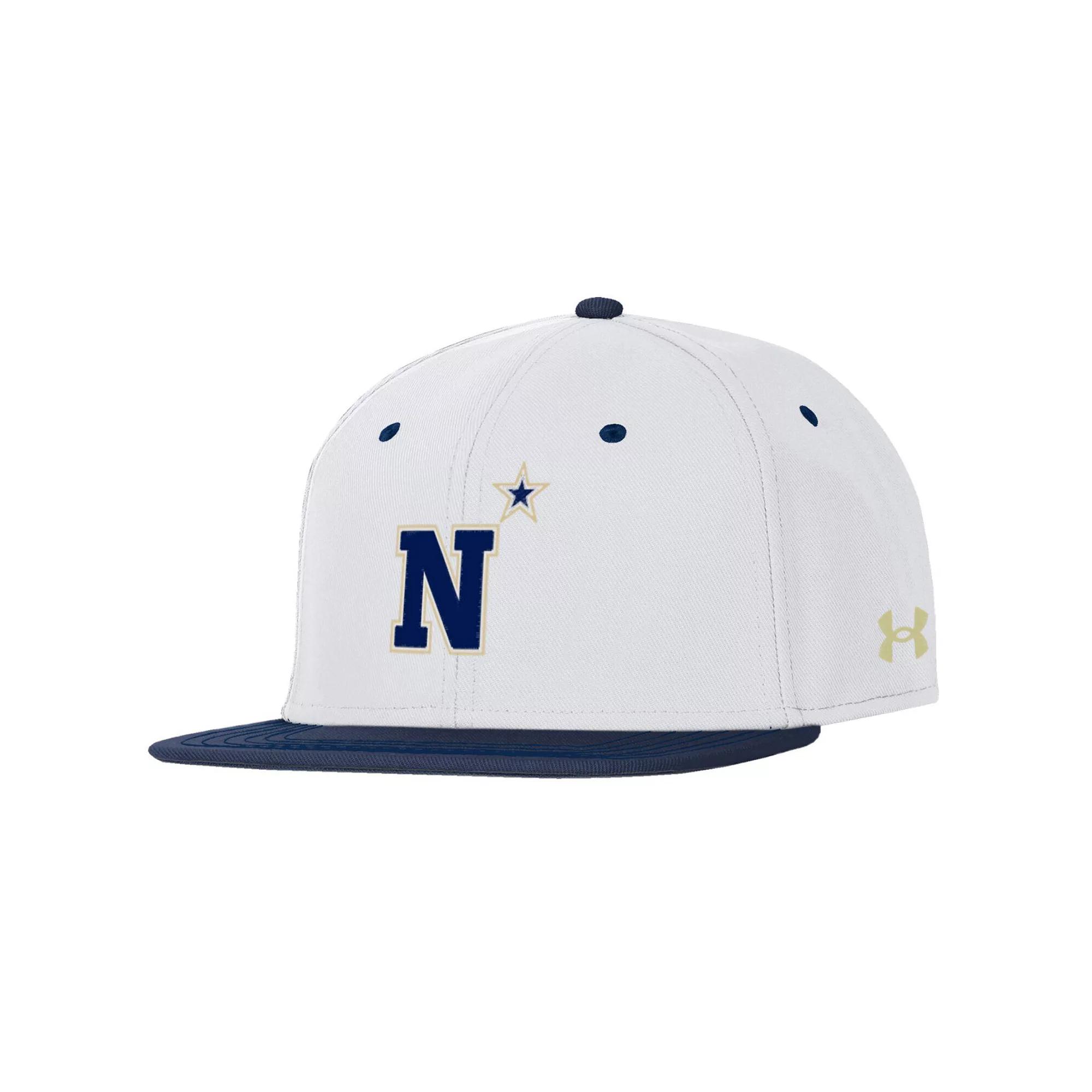 Cheer on the Navy Midshipmen with this Baseball Fitted Hat. Crafted by Under Armour, it features an embroidered logo on the front panels. The fitted design ensures a comfortable feel thats perfect for any Navy Midshipmen game day.Cheer on the Navy Midshipmen with this Baseball Fitted Hat. Crafted by Under Armour, it features an embroidered logo on the front panels. The fitted design ensures a comfortable feel thats perfect for any Navy Midshipmen game day.PRODUCT FEATURESStructured fitFittedOfficially licensedWipe clean with a damp clothBrand: Under ArmourFlat billImportedHigh CrownEmbroidered graphicsMaterial: 100% PolyesterSix panels with eyelets Color: White. Gender: male. Age Group: adult.