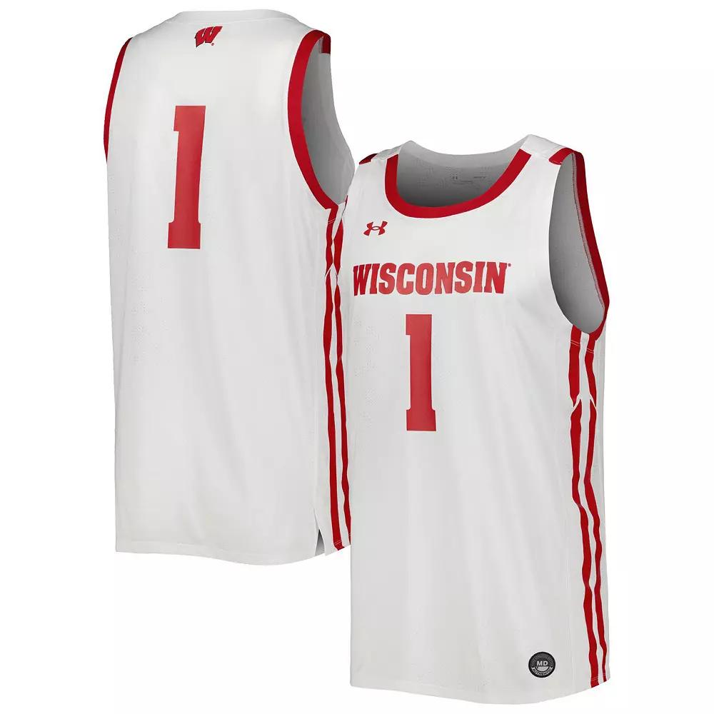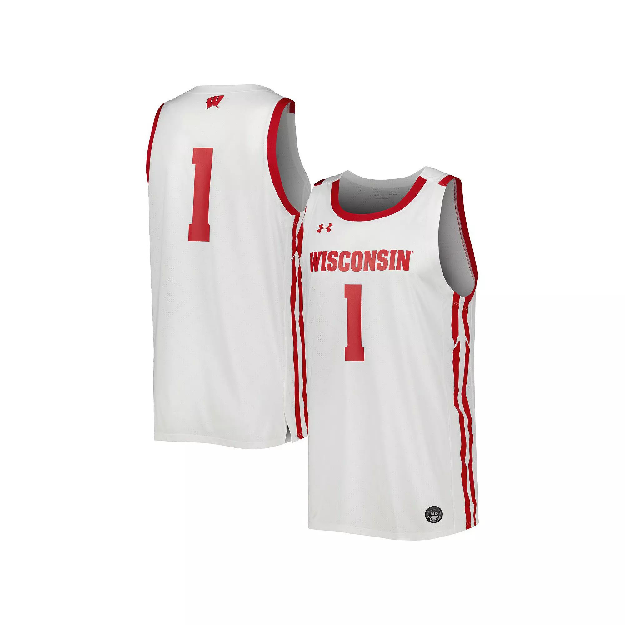 Ball it up like your Wisconsin Badgers the next time you hit the hardwood while sporting this Under Armour basketball jersey. Designed to look like the gear worn by your favorites, this jersey features the team name across the chest and side split hems to ensure it rests comfortably at the waist. Youll be taking your Wisconsin Badgers spirit to the rack every time you don this jersey.Ball it up like your Wisconsin Badgers the next time you hit the hardwood while sporting this Under Armour basketball jersey. Designed to look like the gear worn by your favorites, this jersey features the team name across the chest and side split hems to ensure it rests comfortably at the waist. Youll be taking your Wisconsin Badgers spirit to the rack every time you don this jersey.Brand: Under ArmourOfficially licensedMachine wash with garment inside out, tumble dry lowTagless CollarHeat-sealed graphicsLoose Fit: Oversized cut. Designed with little to no structure in shoulders, chest and waist.Material: 100% PolyesterImportedPerforated fabricSleevelessHem with side splitsWoven tag at hem Size: 3XL. Color: White. Gender: male. Age Group: adult. Material: COTTON.