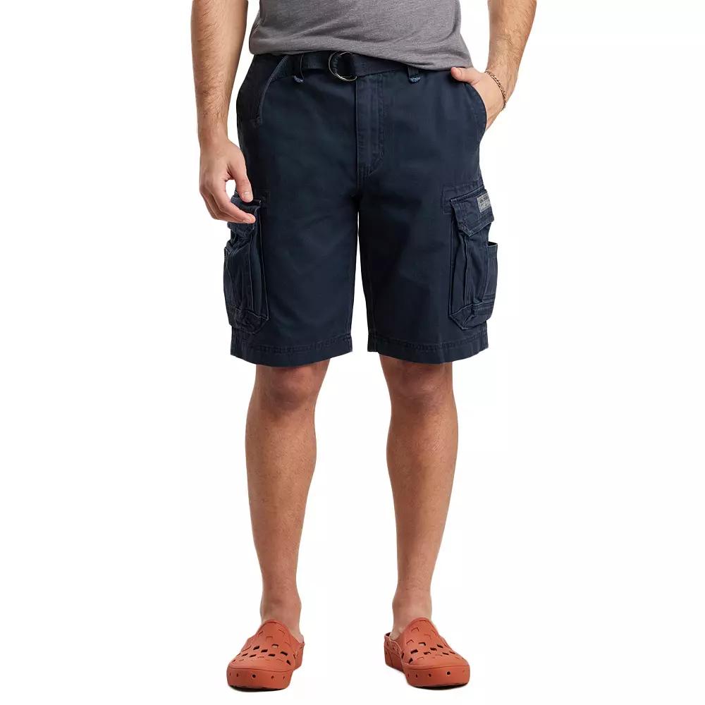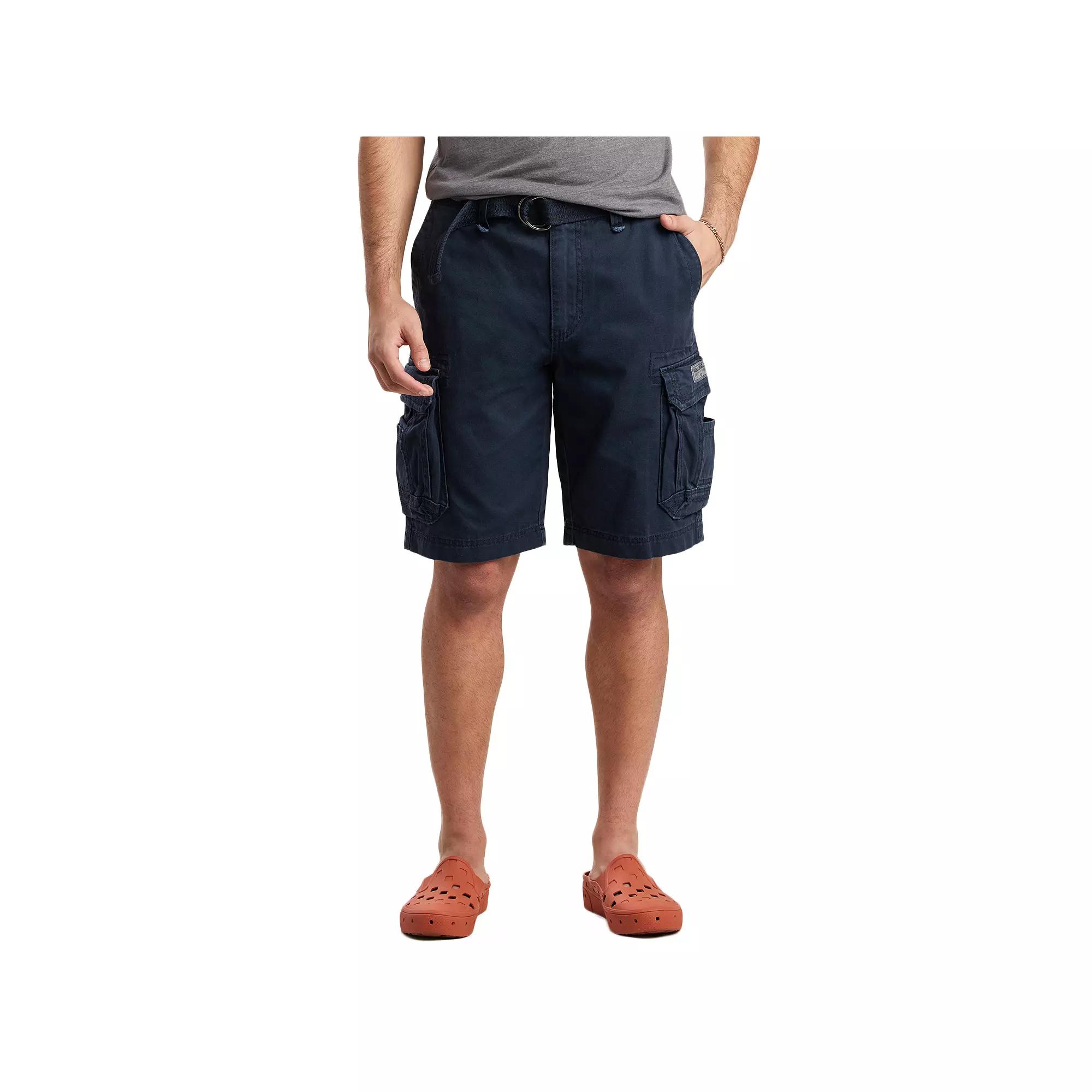 These mens Unionbay cargo shorts let you dominate the warm-weather with style and function.Watch the product video here.D-ring belt includedHeavy-duty construction6 pockets: 2 front slip, 2 side hook & loop cargo & 2 back hook & loop-flapZipper fly with buttonFABRIC & CARECottonMachine washImported Size: 38. Color: Navy. Gender: male. Age Group: adult.