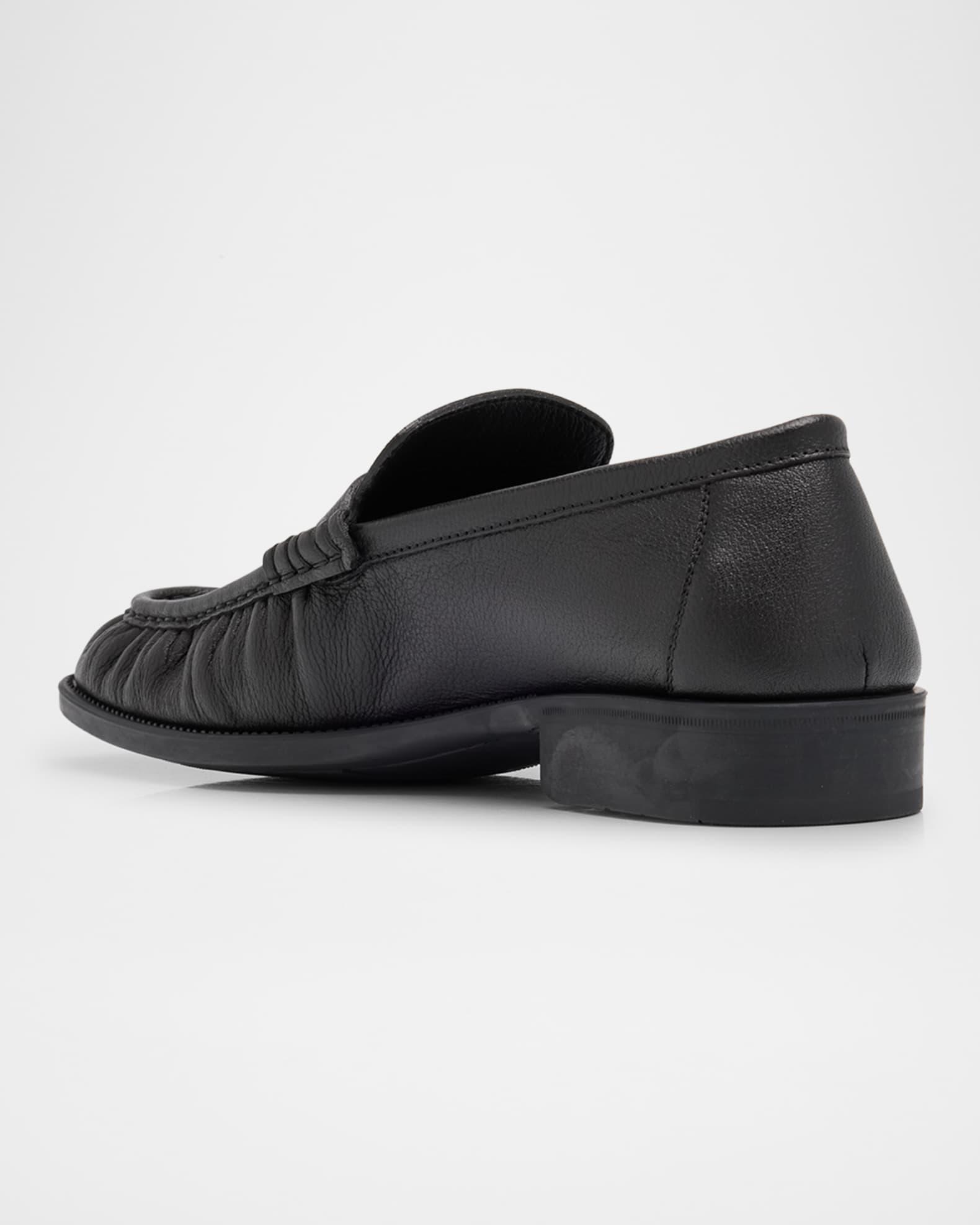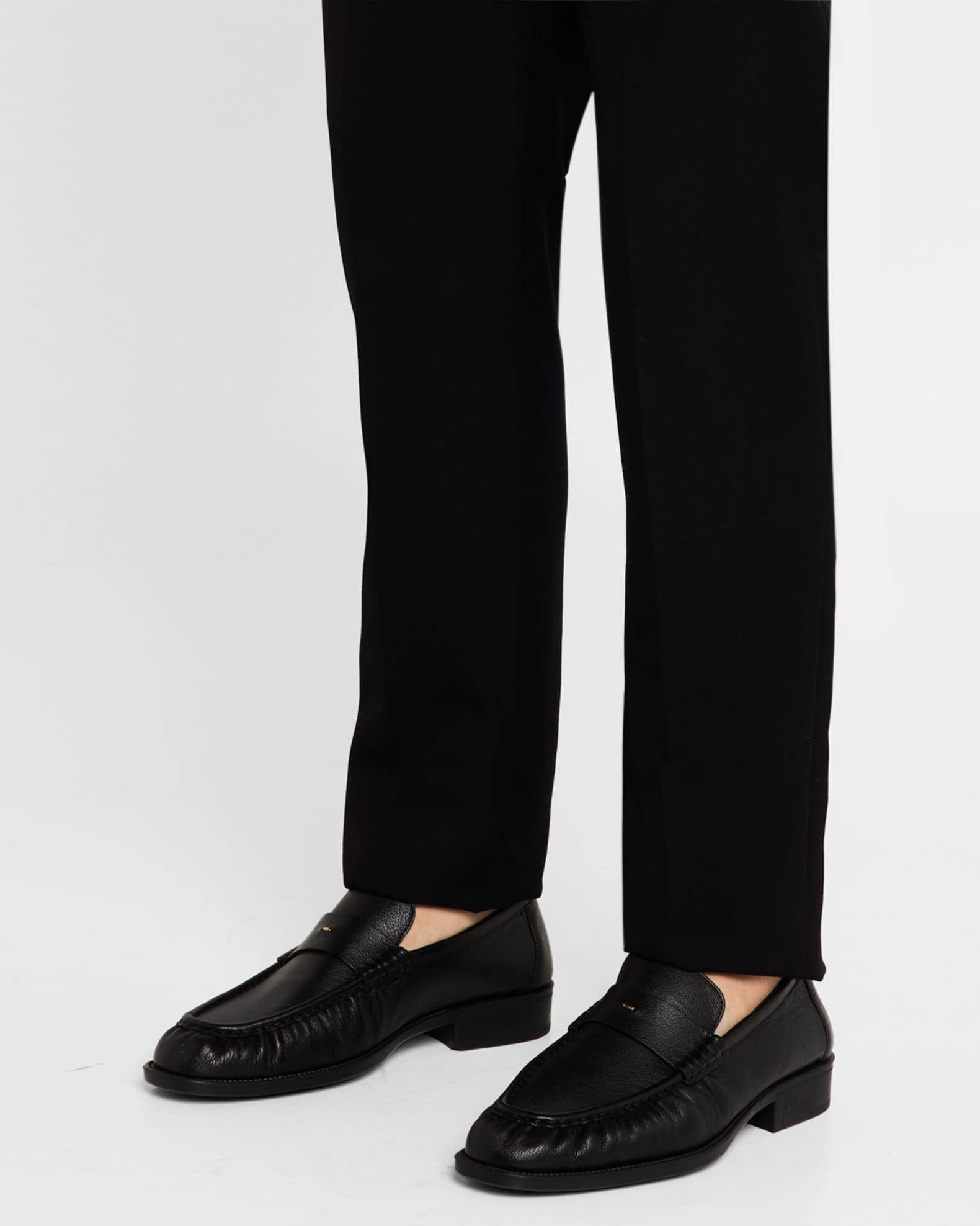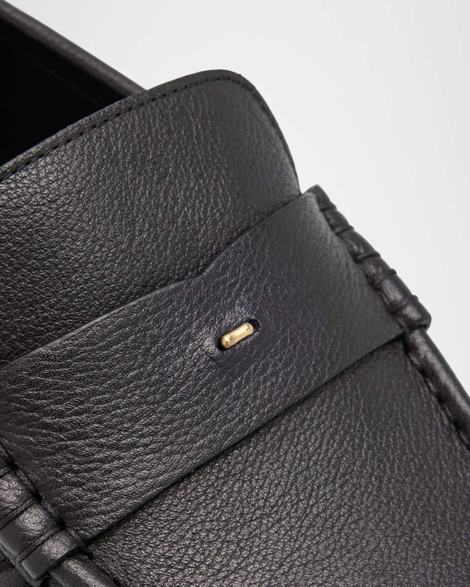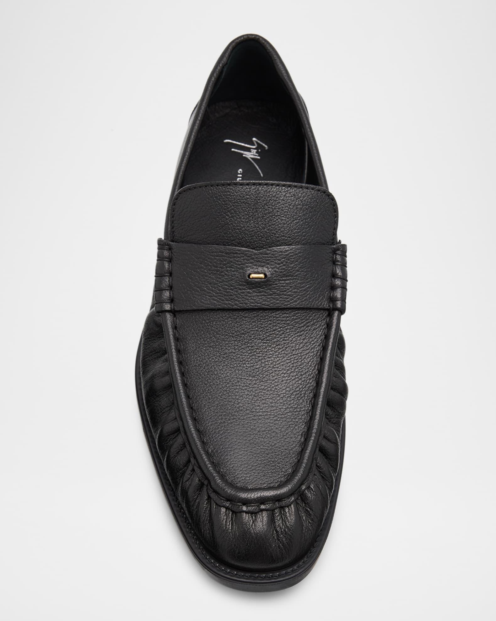 Giuseppe Zanotti "Vegasso" penny loafers in grained calf leather Chunky heel with engraved logo signature Round moc toe Penny keeper strap with gold-tone hardware Rubber sole Slip-on style Made in Italy