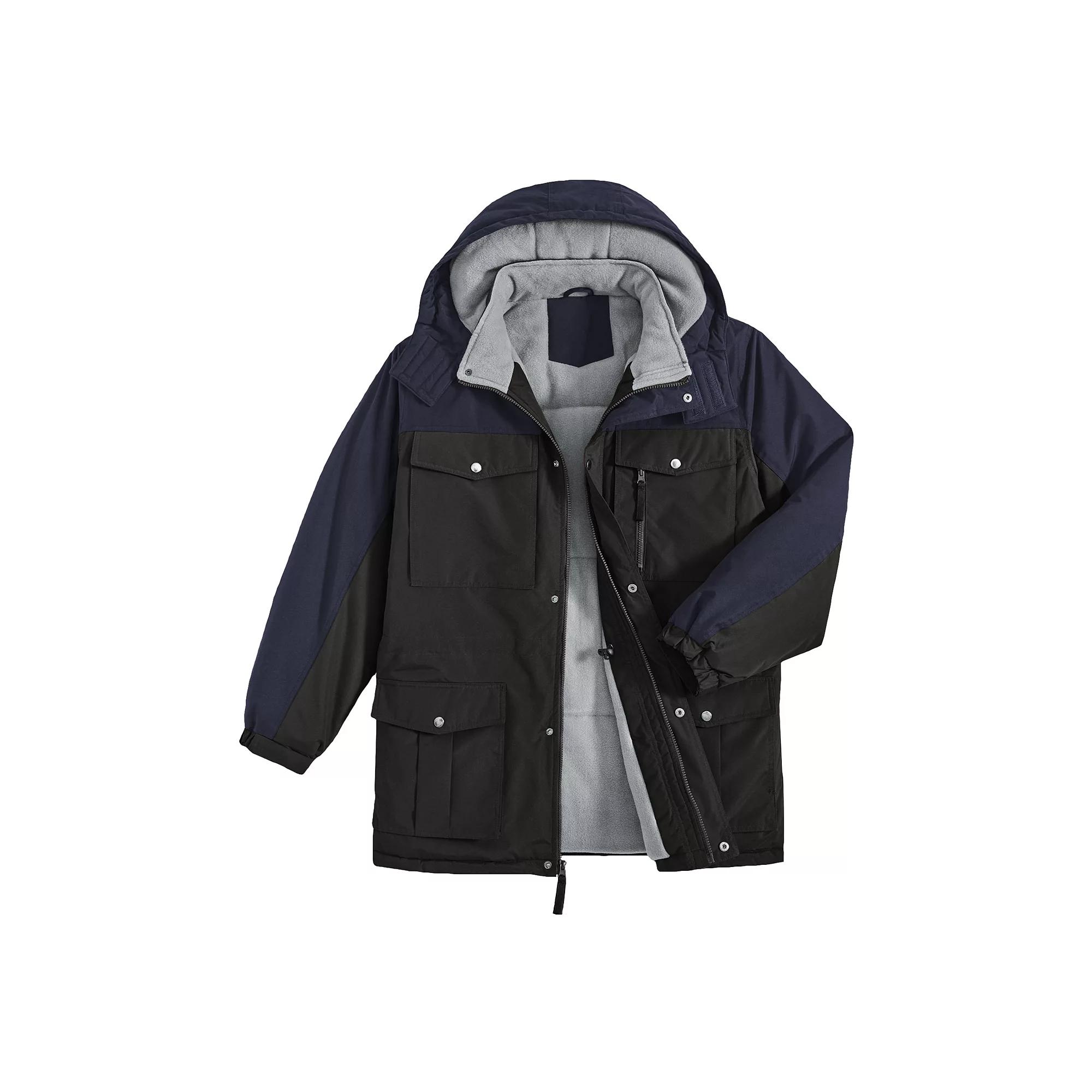 Take on the cold in comfort and confidence with this Men's Victory Outfitters Heavyweight Hooded Parka. Click on this MEN'S GUIDE to find the perfect fit and more! Take on the cold in comfort and confidence with this Men's Victory Outfitters Heavyweight Hooded Parka. Click on this MEN'S GUIDE to find the perfect fit and more! FEATURES Attached drawstring hood Long sleeves Snap closure 5 exterior pockets Heavyweight warmth ratingFIT & SIZING 33 in. from shoulder to hemFABRIC & CARE Polyester Fill: polyester Lining: polyester Machine wash Imported Color: Black Navy. Gender: male. Age Group: adult.