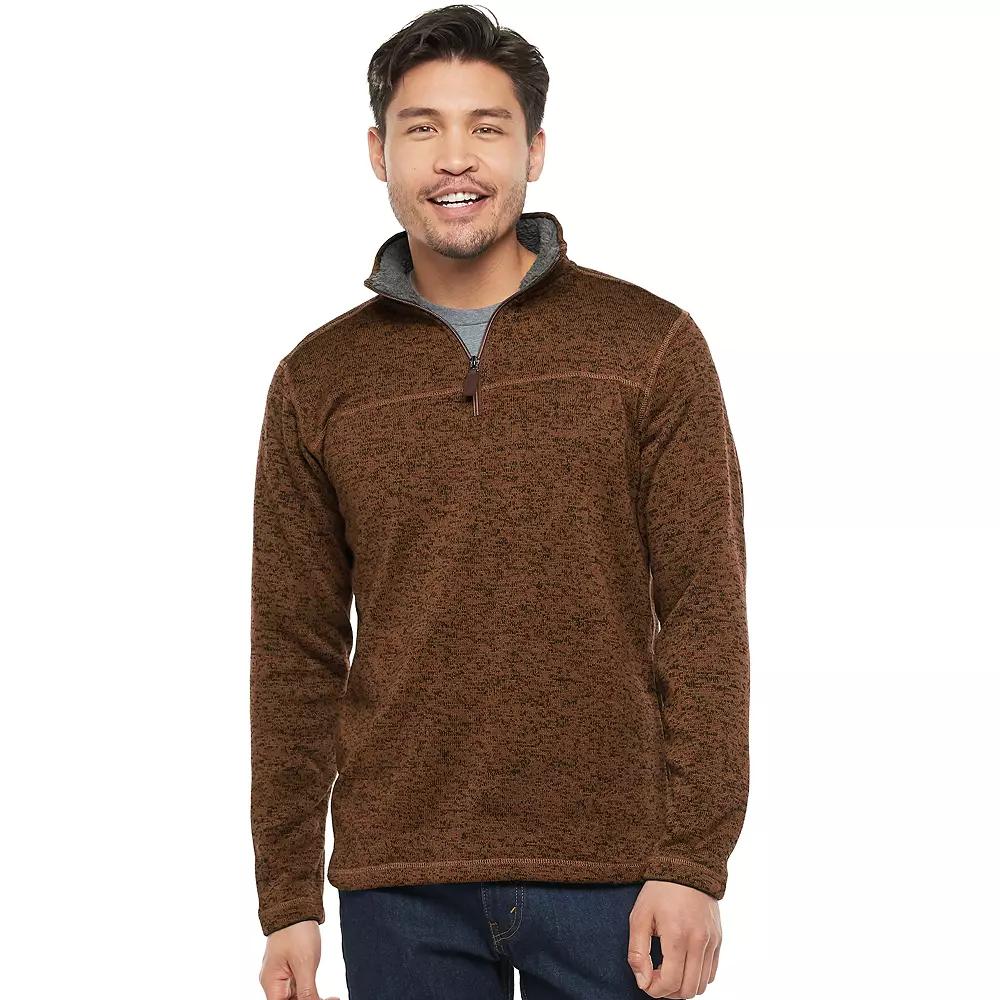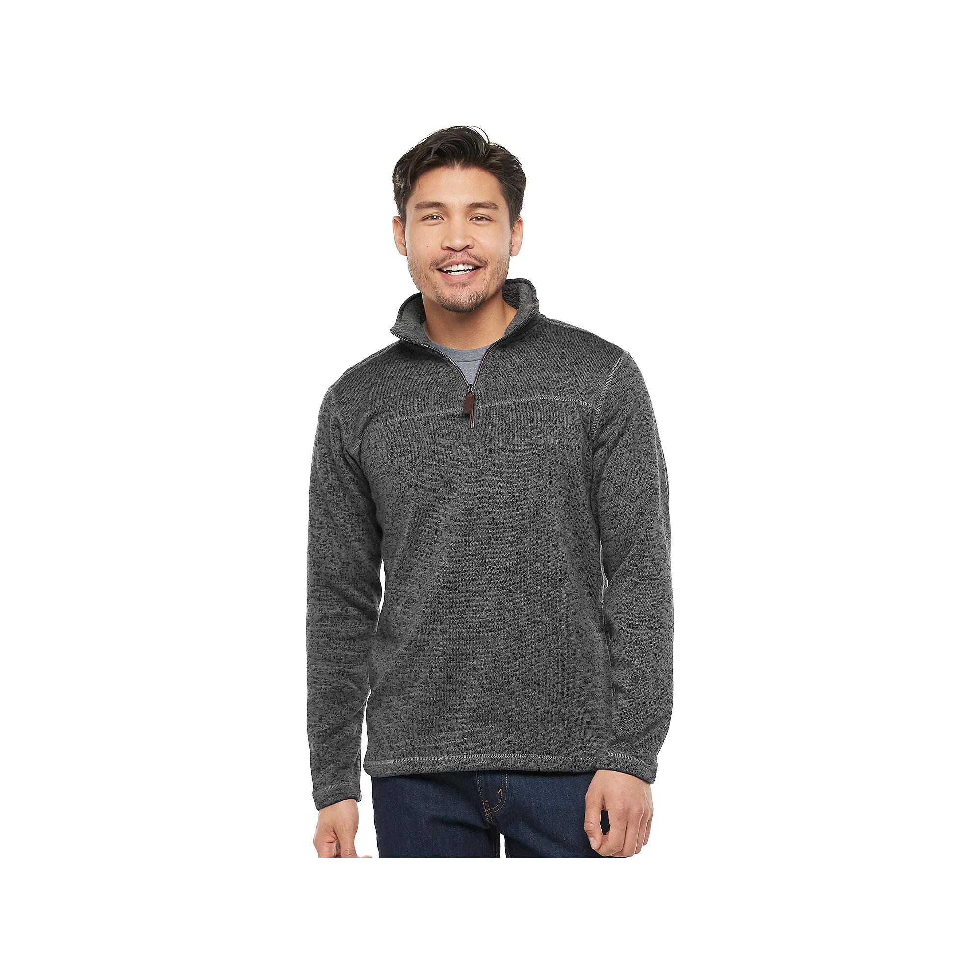 Layer on the style and warmth with this mens sherpa-fleece pullover from Victory Outfitters. Layer on the style and warmth with this mens sherpa-fleece pullover from Victory Outfitters. Heathered Long sleeves Sherpa-lined collar Quarter-zip frontFIT & SIZING Classic fitFABRIC & CARE Polyester Machine wash Imported Color: Blue. Gender: male. Age Group: adult. Material: Sherpa|Fleece.