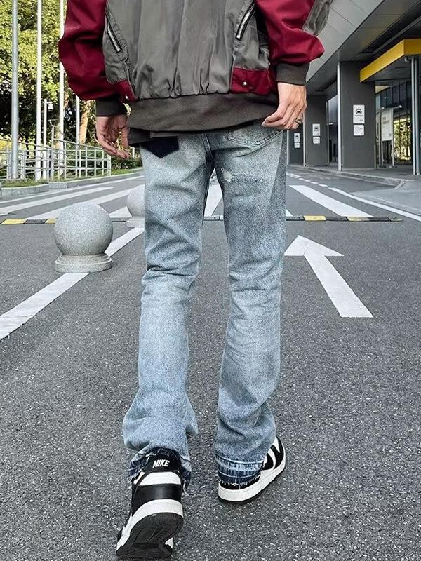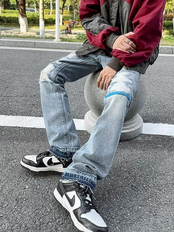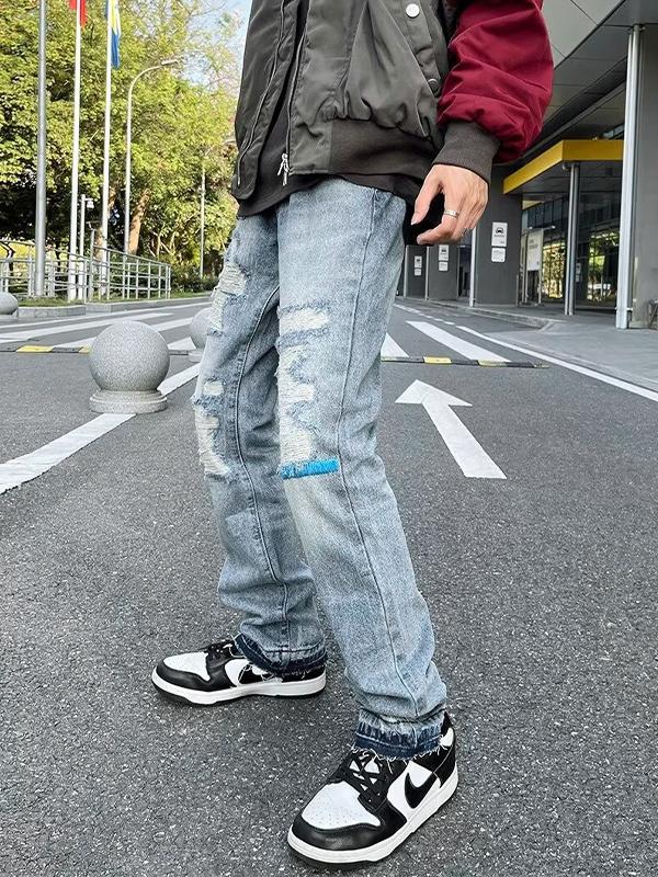 Men's Vintage Wash Ripped High Rise Loose Jeans