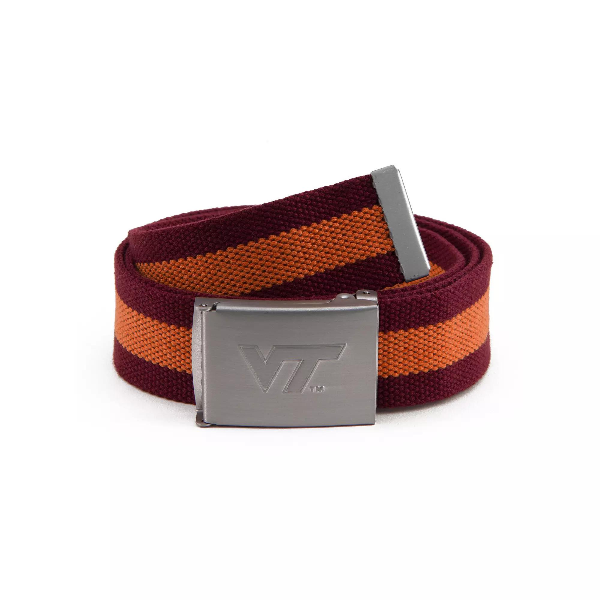 Showcase your love for the Virginia Tech Hokies with this fun striped belt. Its fresh design adds a stylish flair to your day-to-day fan apparel. Everywhere you go, the subtle yet striking Virginia Tech Hokies graphics will make everyone see you are their biggest fan.Showcase your love for the Virginia Tech Hokies with this fun striped belt. Its fresh design adds a stylish flair to your day-to-day fan apparel. Everywhere you go, the subtle yet striking Virginia Tech Hokies graphics will make everyone see you are their biggest fan.PRODUCT FEATURES1.5 WidthBrand: Eagles WingsCut to fitEmbossed graphicsHand wash, dry flatImportedMaterial: 100% Nylon Fabric; 100% Metal BuckleMetal buckle and belt tipOfficially licensedOne size fits most (32-50.5)Woven stripes Size: One Size. Color: Team. Gender: male. Age Group: adult.