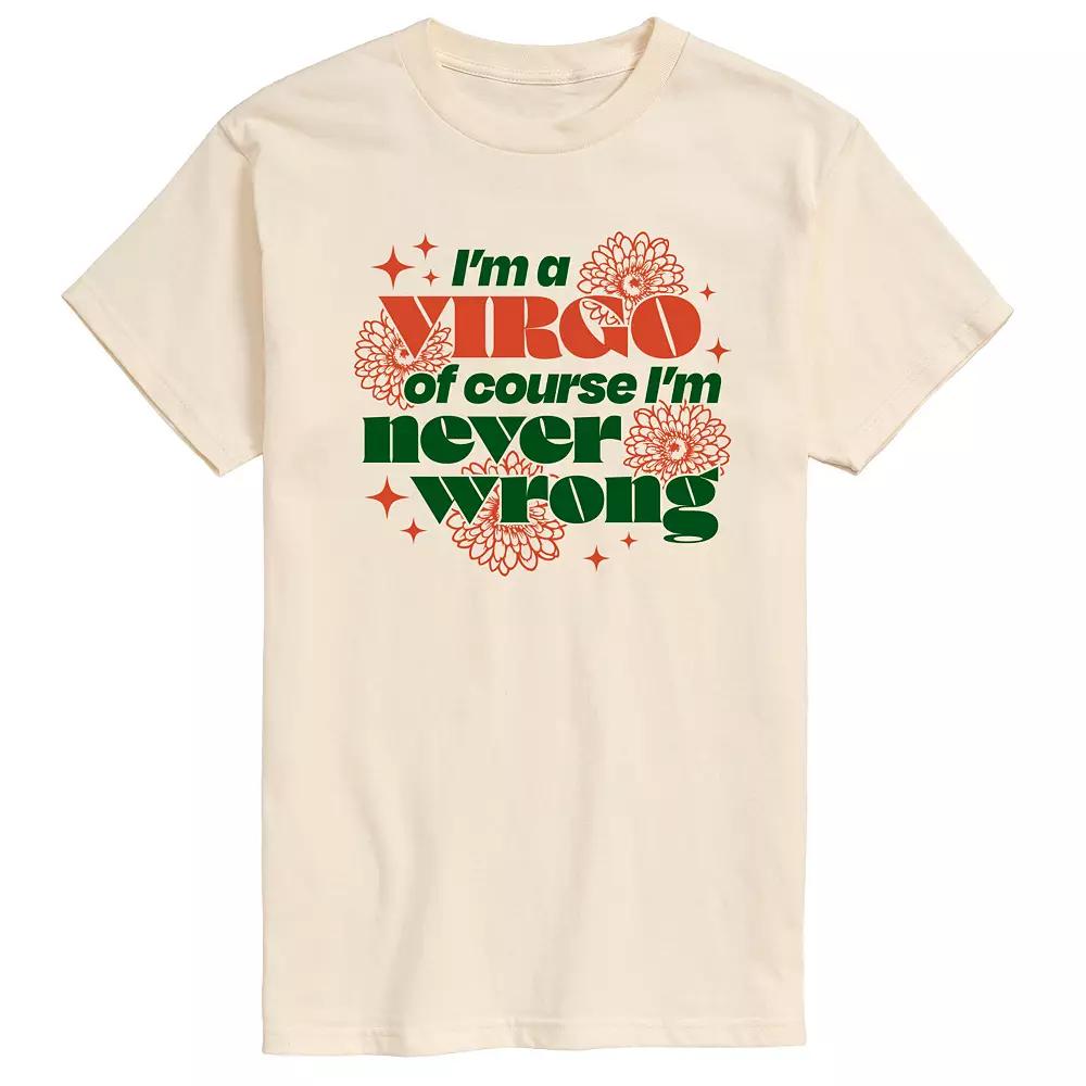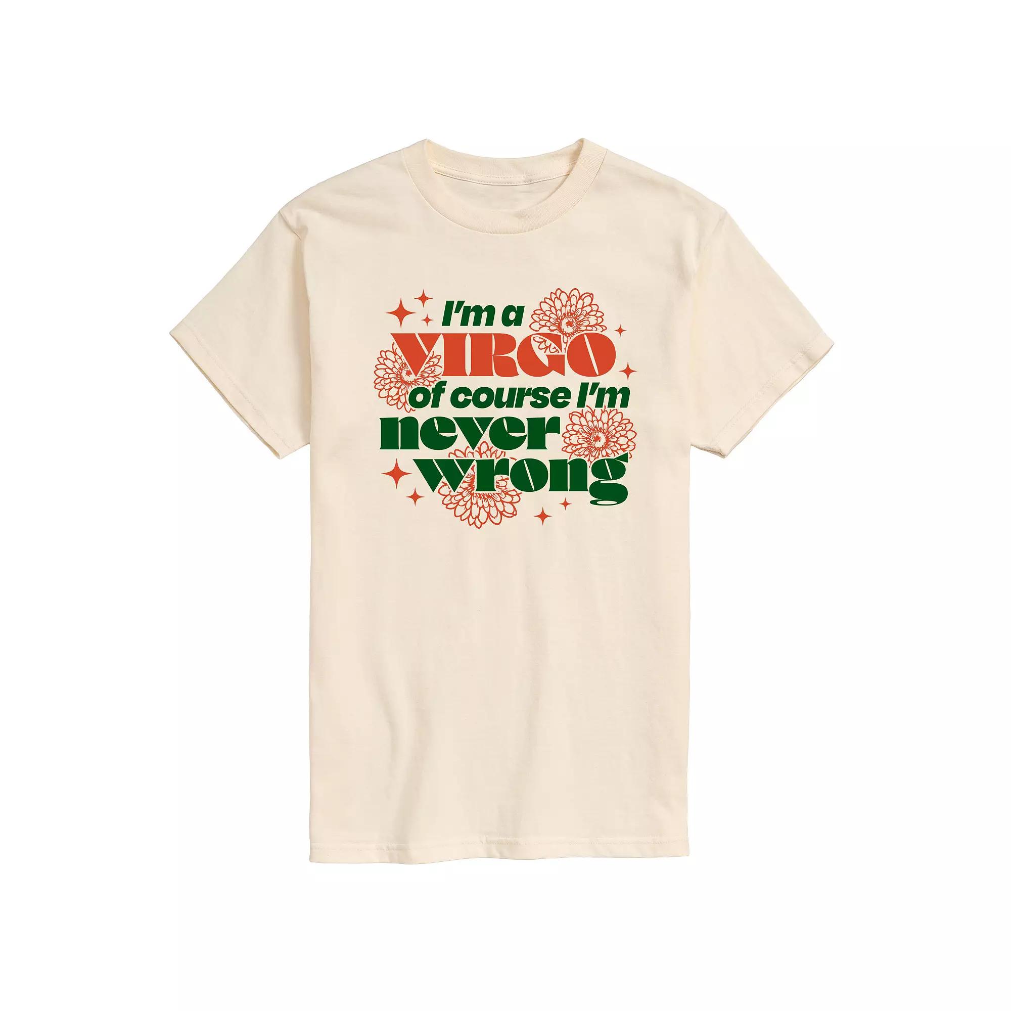Add a quirky touch to your wardrobe with this mens Virgo Never Wrong Graphic Tee. Add a quirky touch to your wardrobe with this mens Virgo Never Wrong Graphic Tee. FEATURES Crewneck Short sleeveFABRIC & CARE Solid colors: cotton; Heather colors: cotton, polyester Machine wash Imported Color: Beige. Gender: male. Age Group: adult.