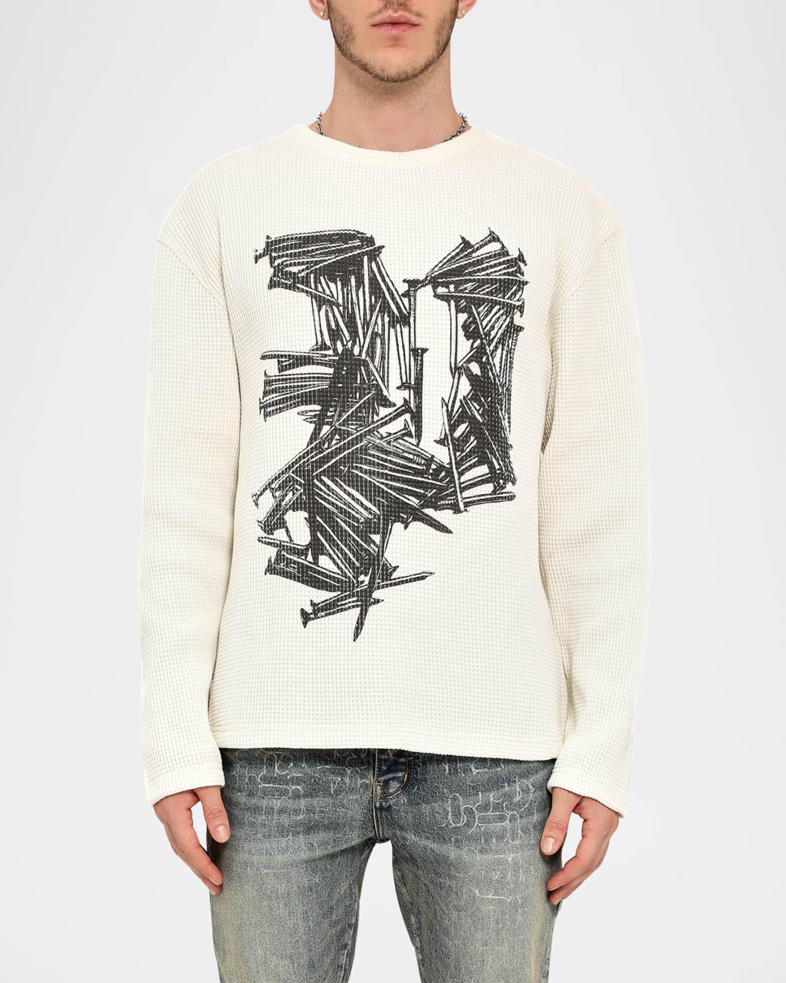 Men's Waffle Knit Nail Graphic Long-Sleeve T-Shirt