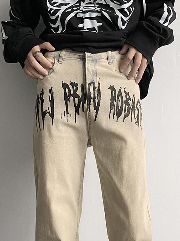 Men's Wash Letter Print Loose Jeans