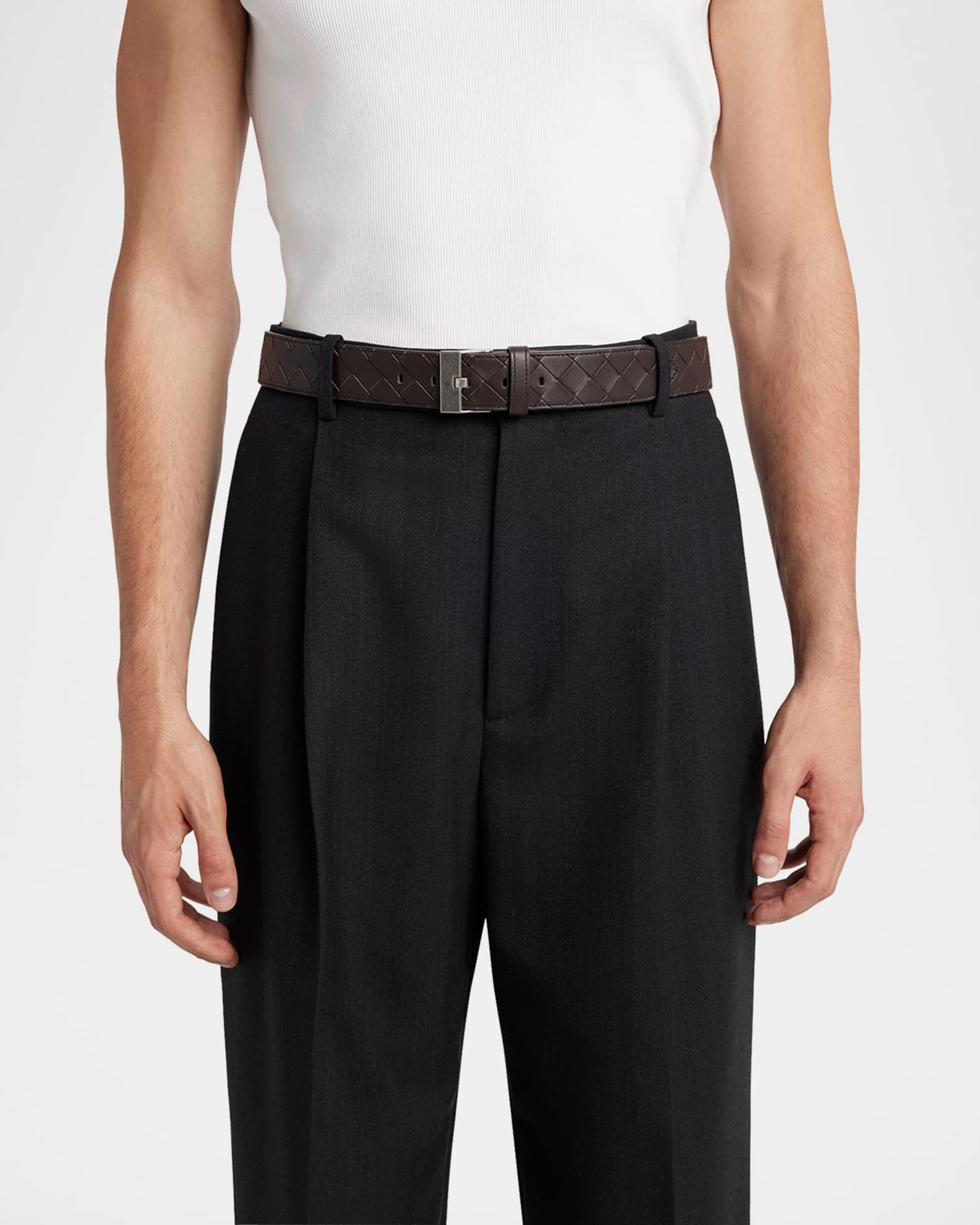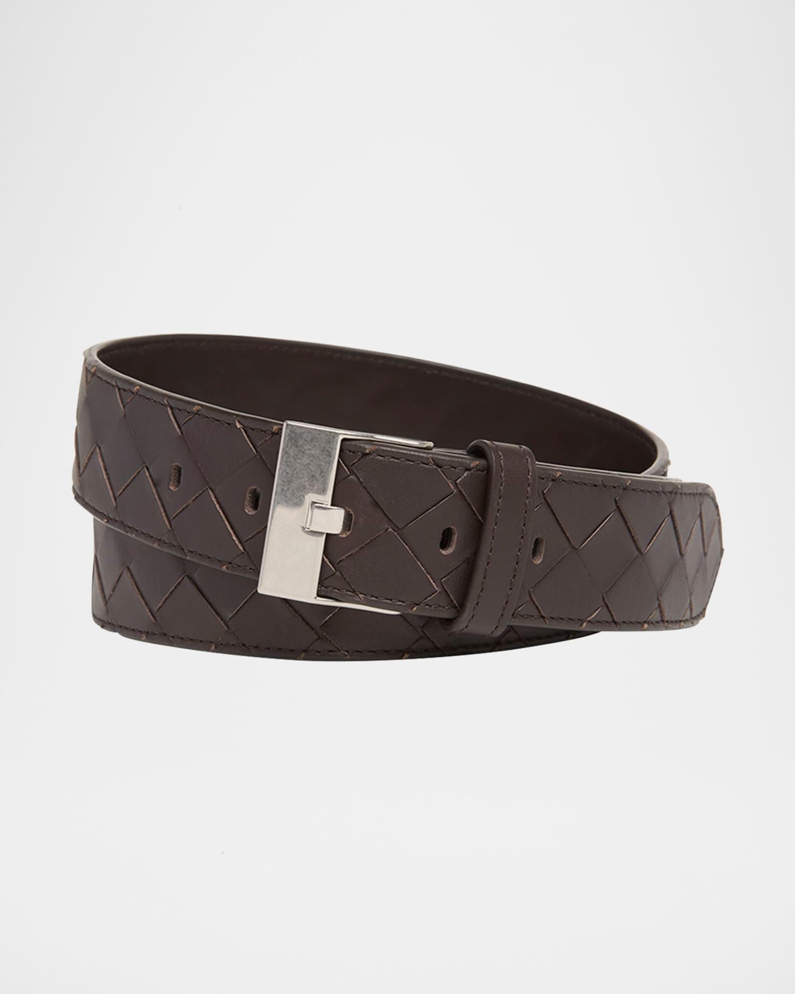 Men's Watch-Buckle Intrecciato Leather Belt
