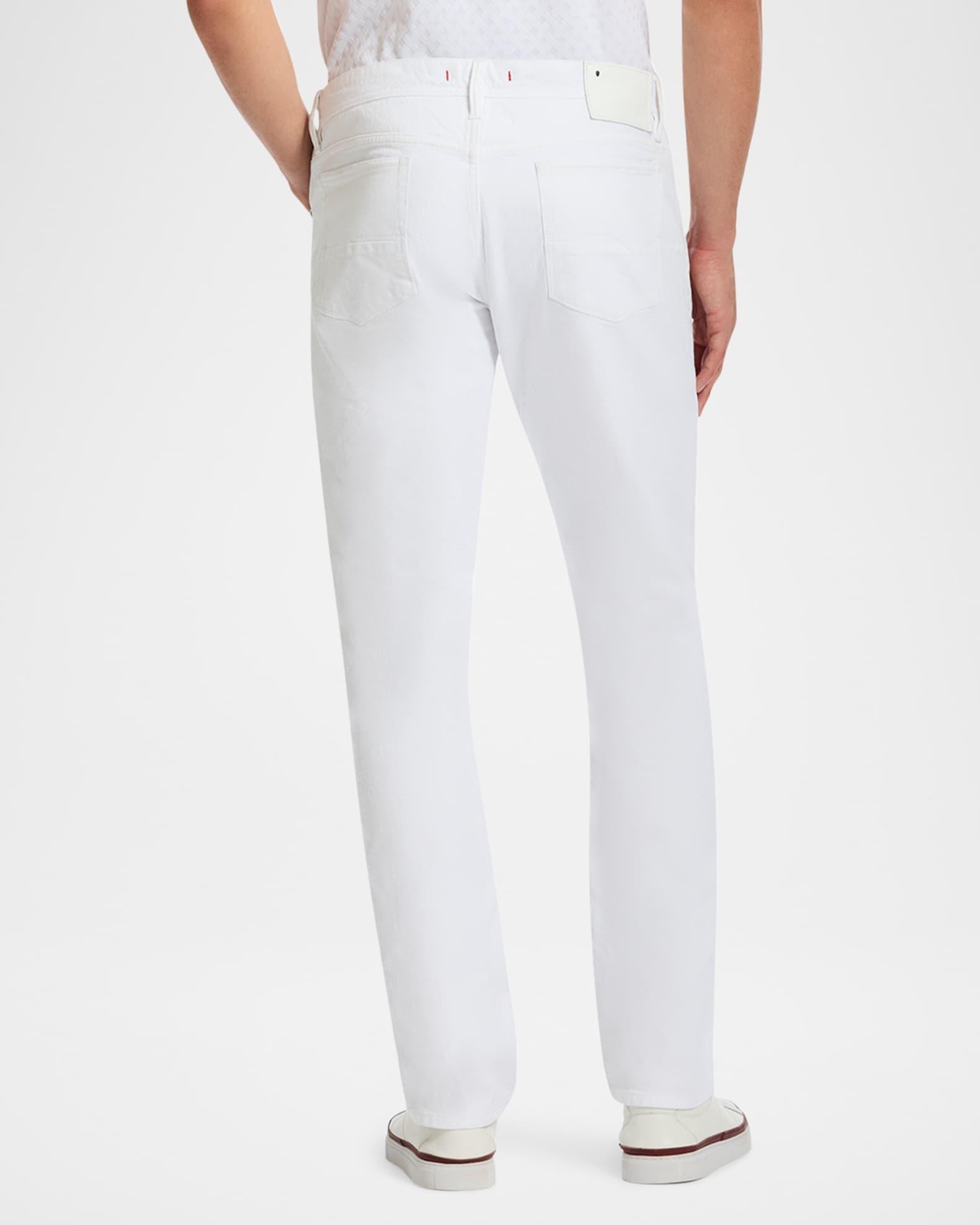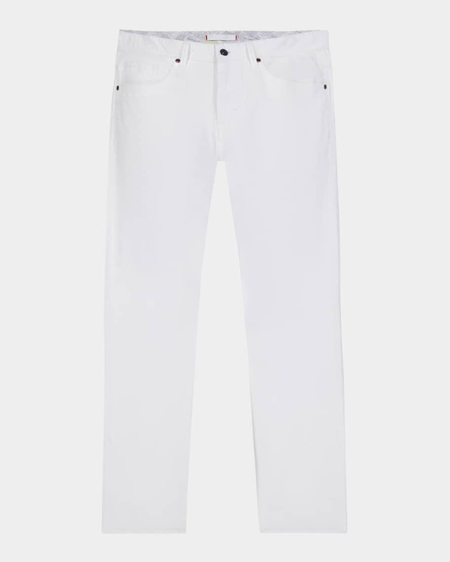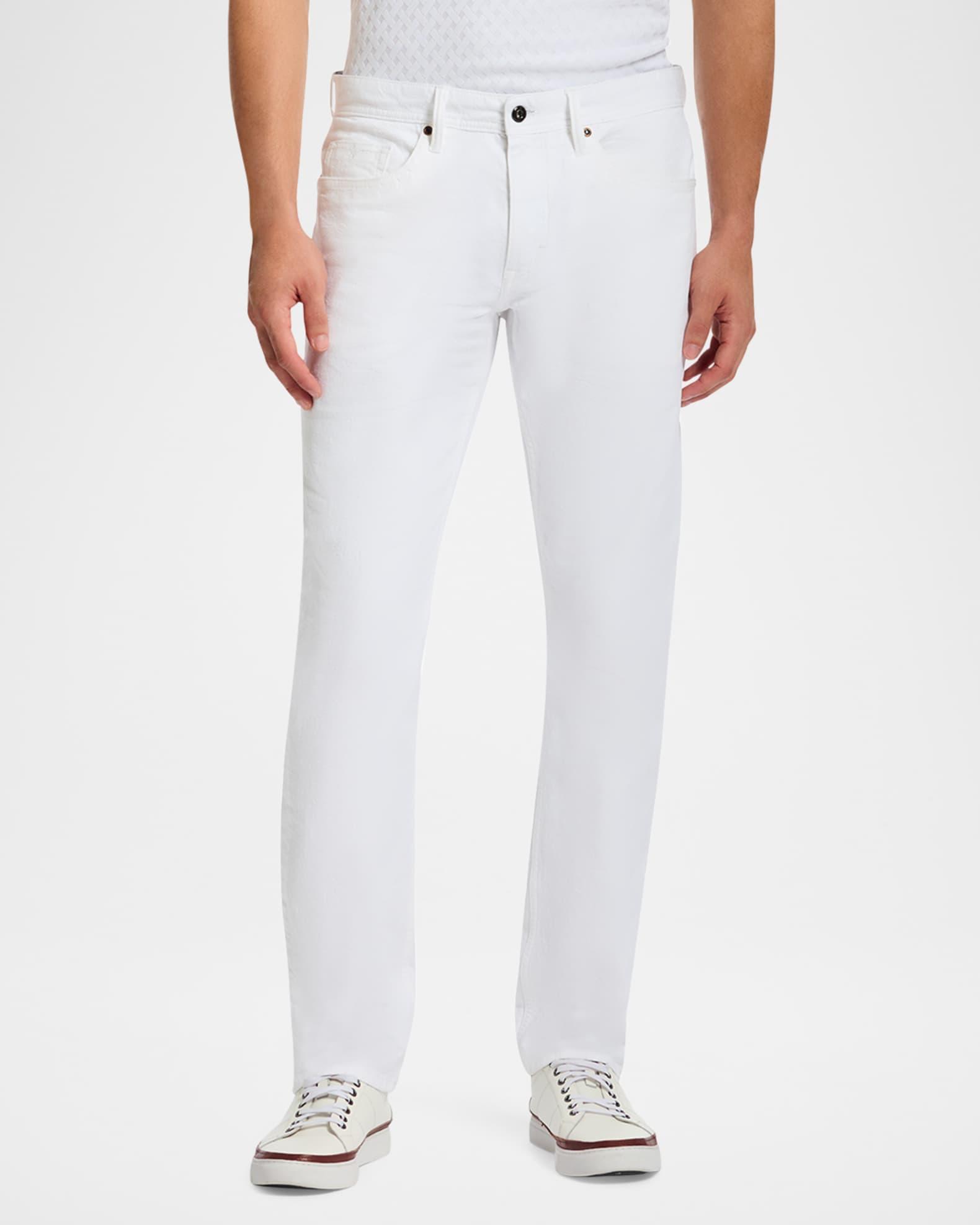 Introducing robert graham's creative take on your event-ready needs, the "new formal." you'll love that this denim style puts a twist on the classic with jacquard floral paisley. Wear the wells denim with a new formal button down and head straight to your next evening function with bold confidence. Robert Graham pants in solid denim Regular rise Five-pocket style Coin pocket with tonal rg embroidery Signature leather patch with skull rivet Fitted through straight legs Full length Button-zip front; belt loops Rg devil at inside zipper Cotton/spandex Machine wash cold Imported