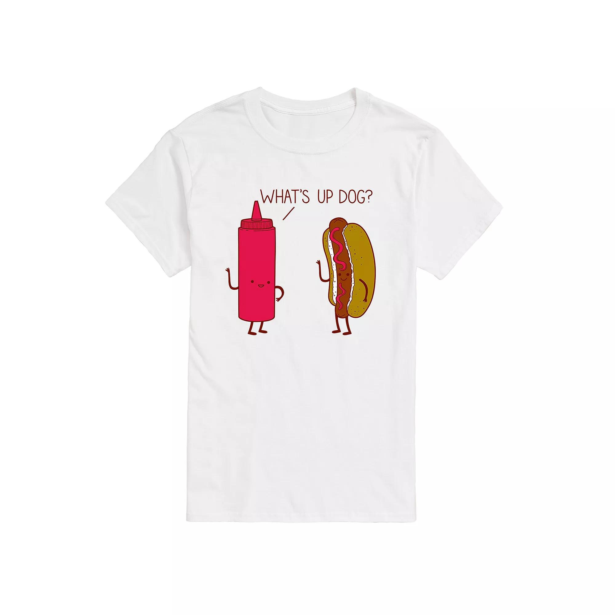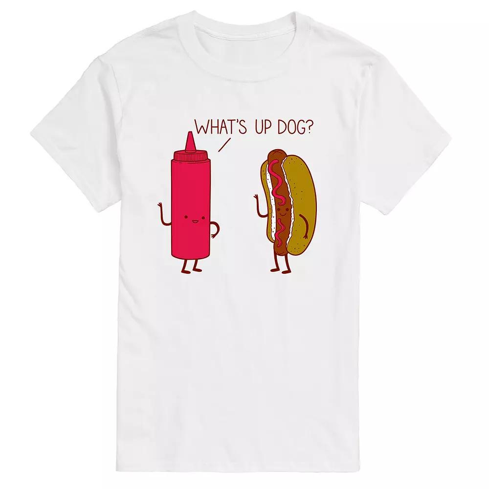 Spruce up your closet with this Mens What Up Dog Ketchup Graphic Tee. Spruce up your closet with this Mens What Up Dog Ketchup Graphic Tee. FEATURES Crewneck Short sleevesFABRIC & CARE Solid: cotton Heather: cotton, polyester Machine wash Imported Color: White. Gender: male. Age Group: adult.