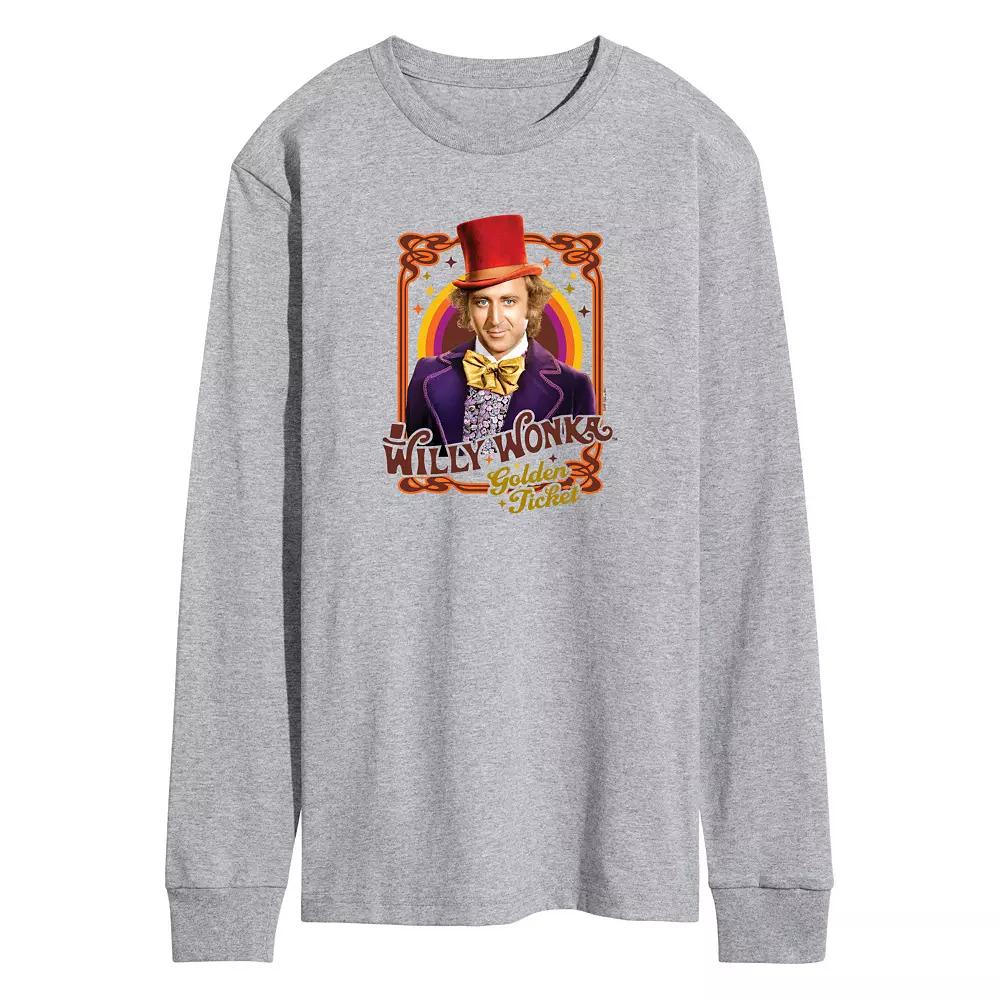 Hell love showing off his personal sense of style with this mens Willy Wonka Frame Long Sleeve Graphic Tee. FEATURES Crewneck Long sleeveFABRIC & CARE Solid colors: cotton; Heather colors: cotton, polyester Machine wash Imported Size: XS. Color: Med Grey. Gender: male. Age Group: adult. Material: Polyester|Cotton.