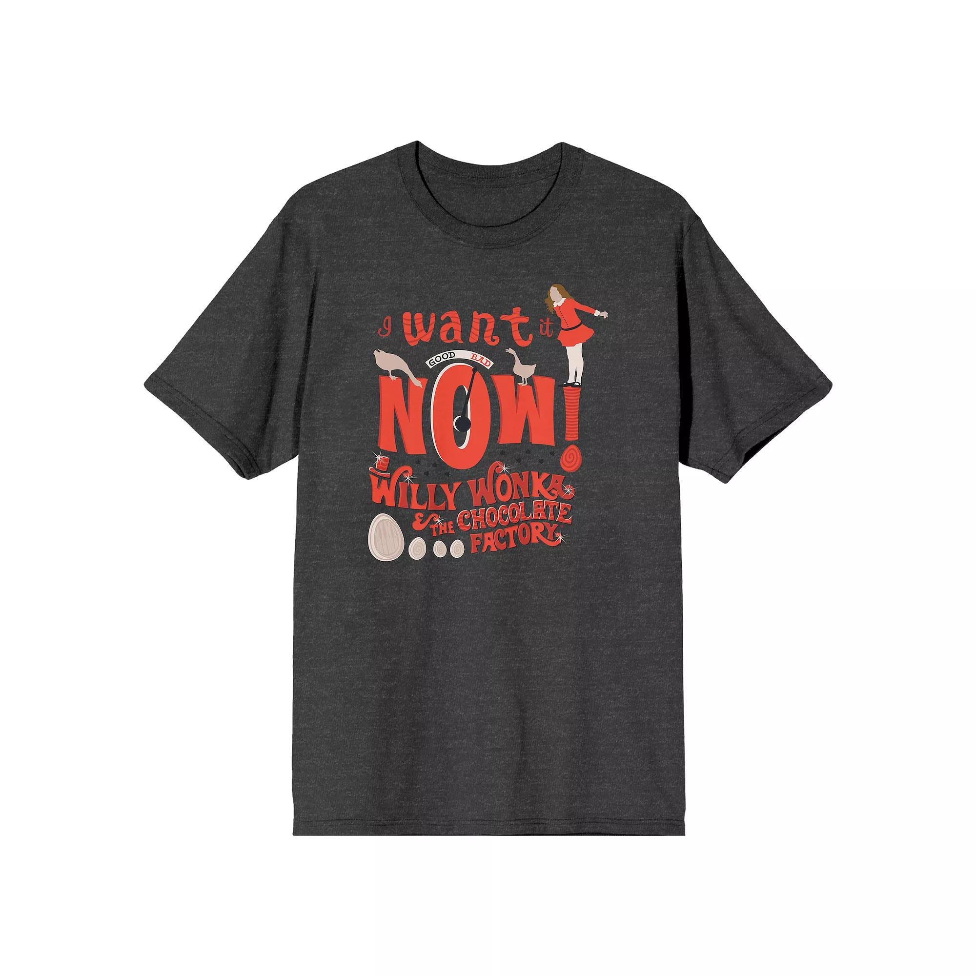 Veruca Salt was not nice, but you can be even in this mens Willy Wonka Want It Now Tee. Veruca Salt was not nice, but you can be even in this mens Willy Wonka Want It Now Tee. Crewneck Short sleevesFABRIC & CARE Cotton Machine wash Imported Color: Grey. Gender: male. Age Group: adult. Pattern: Graphic.